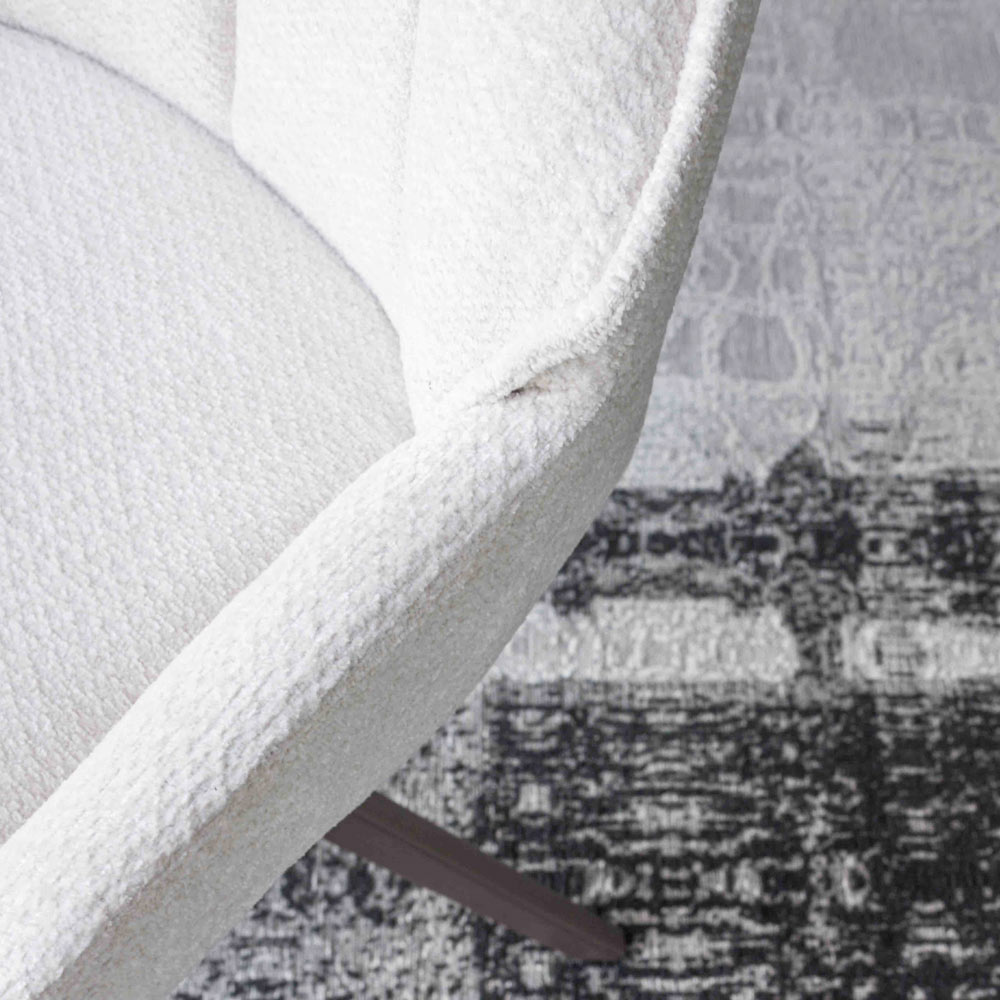 Ce fauteuil incarne l'alliance parfaite entre élégance contemporaine et confort absolu . Les lignes douces et sinueuses du dossier se fondent harmonieusement avec l' assise rembourrée , créant une silhouette raffinée et accueillante qui sublimera tout espace. Le revêtement en tissu clair et doux au toucher confère une impression de légèreté et de sophistication , tandis que le piètement pyramidal en métal peint à quatre branches assure stabilité et une touche de design moderne .