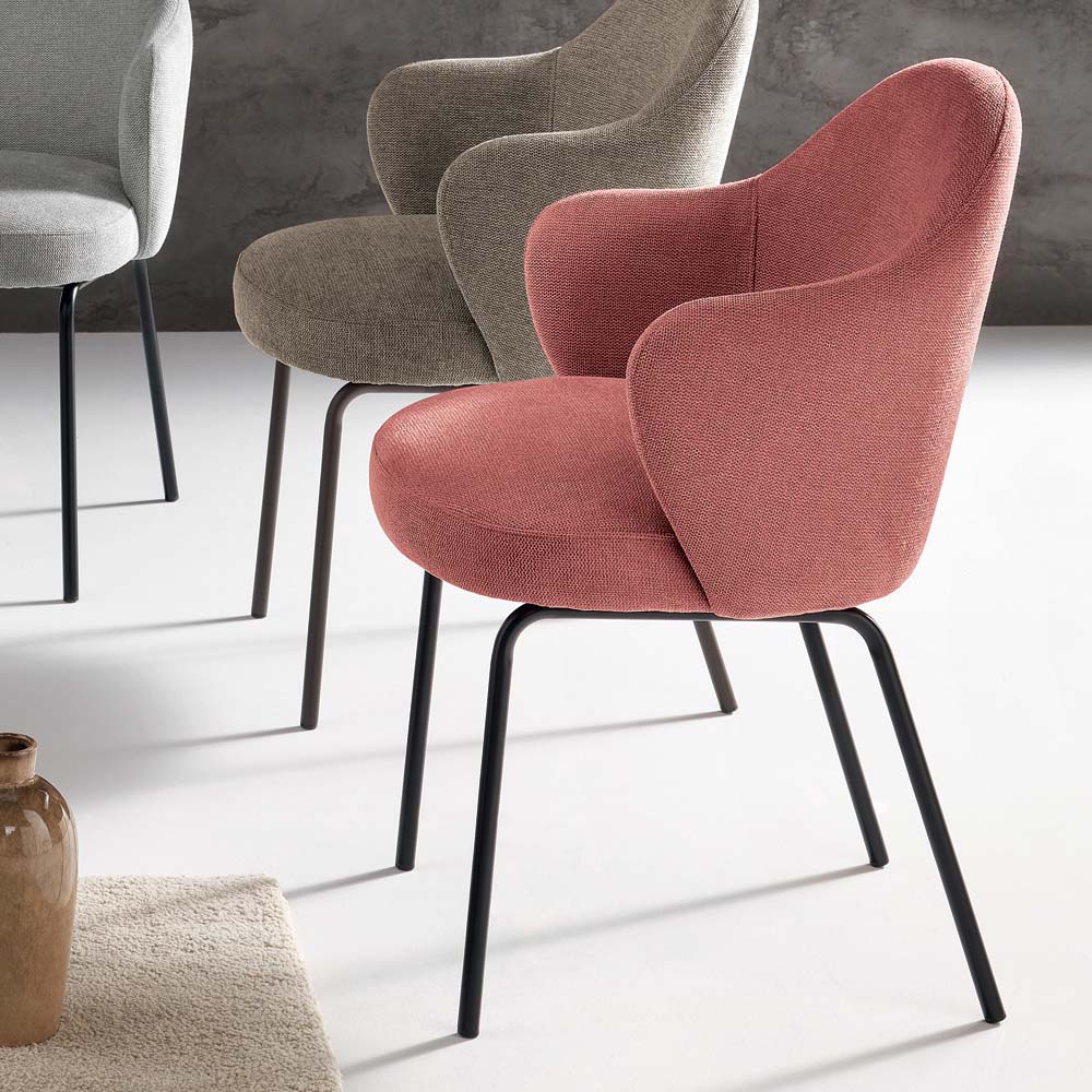 La structure en métal peint , légère mais stable, soutient l'assise avec équilibre et élégance, rehaussant le design moderne de la chaise tout en assurant solidité et durabilité dans le temps.