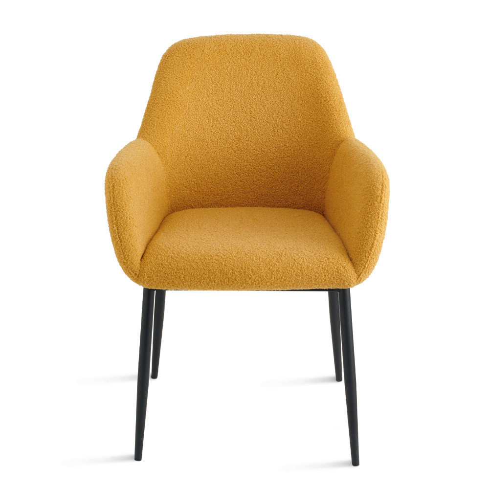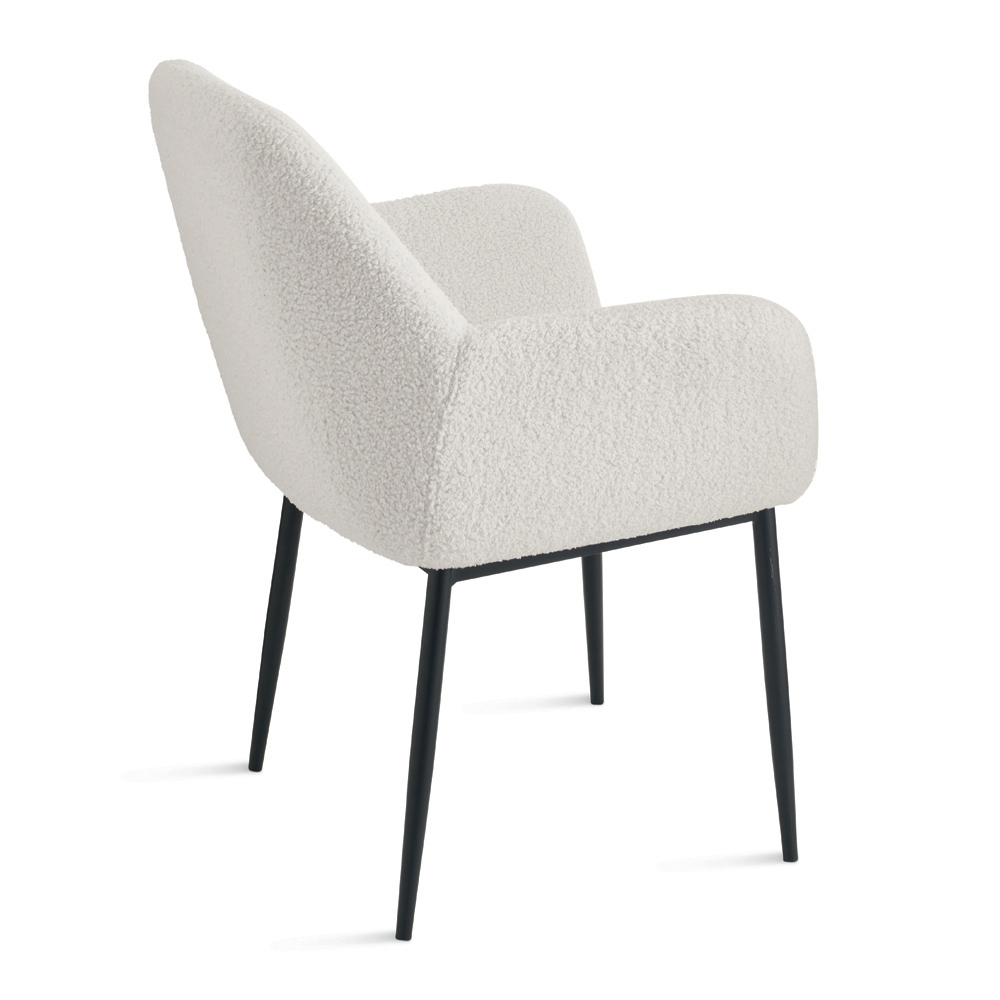 Ce fauteuil est doté d'une assise large et confortable avec accoudoirs intégrés , créant une forme géométrique compacte conçue pour un confort optimal au quotidien. Le tissu bouclé accentue la douceur de l'assise, offrant un équilibre parfait entre esthétique et fonctionnalité.