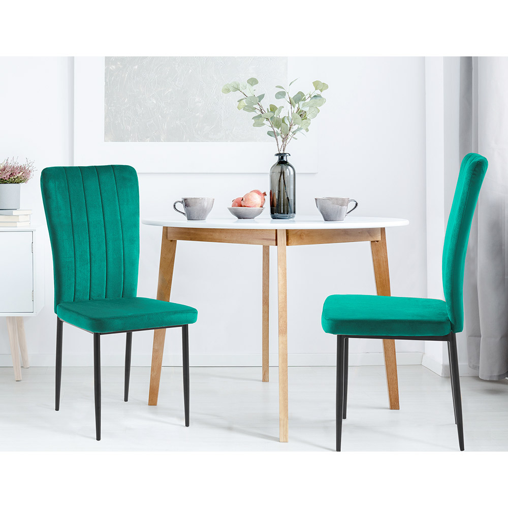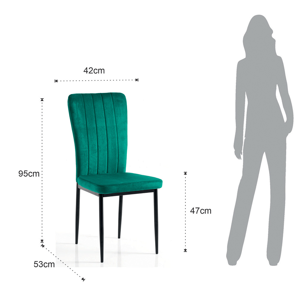 Cette chaise est l'équilibre parfait entre élégance et confort , un incontournable pour tout environnement moderne. Recouverte d'un tissu en velours vert, cette chaise attire non seulement le regard par sa couleur vibrante, mais offre également une assise confortable grâce au rembourrage et au support ergonomique.