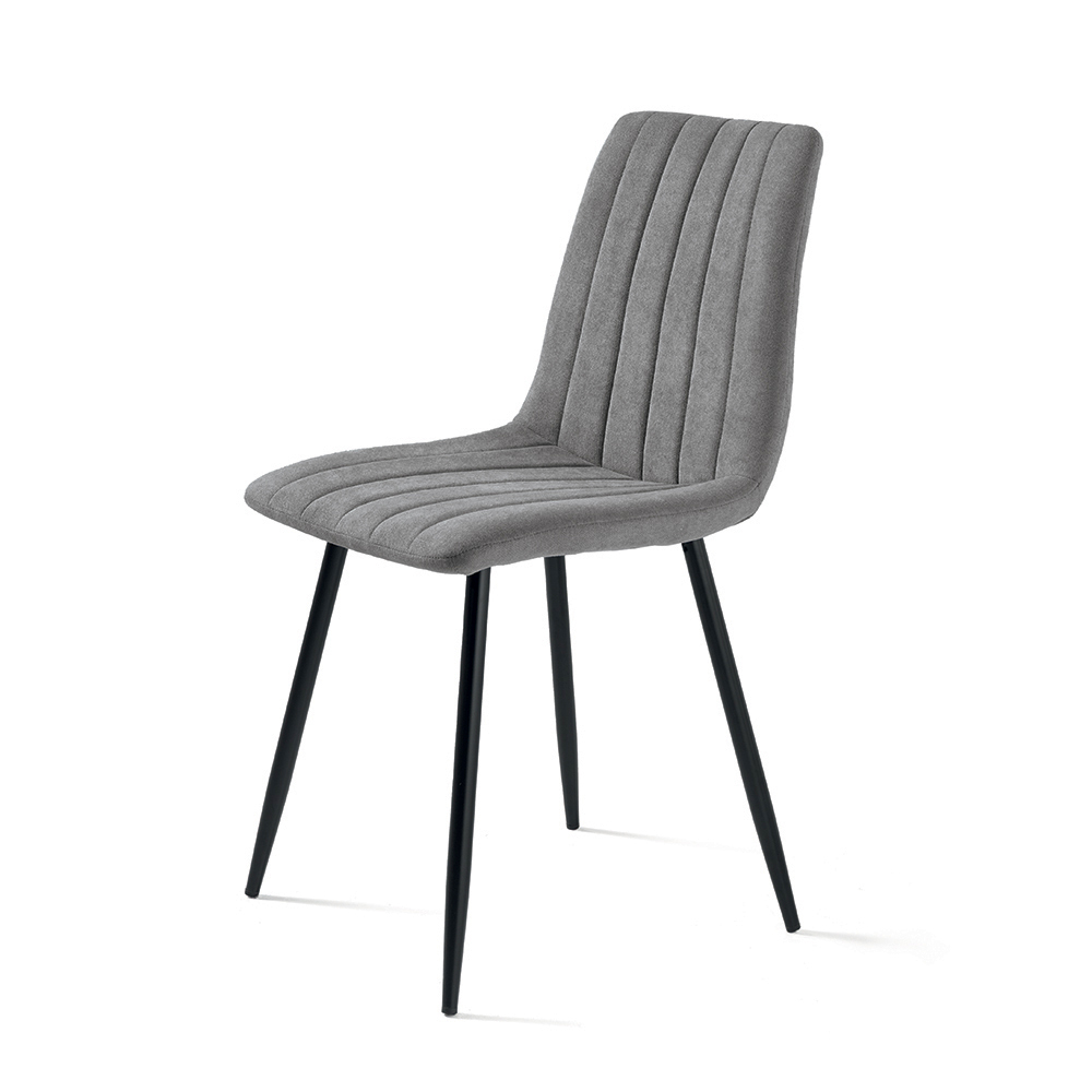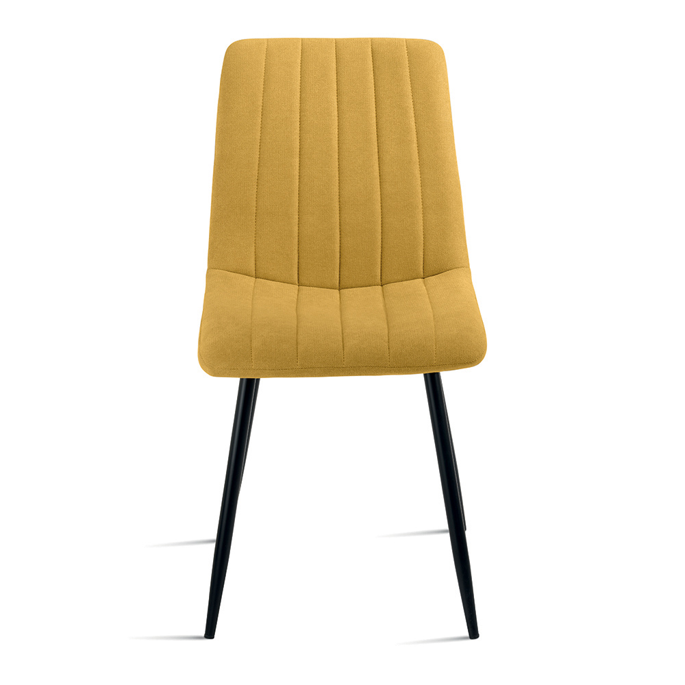 Ensemble élégant de 4 chaises modernes, conçu pour meubler avec style votre salle à manger , votre cuisine ou votre salon . L'assise rembourrée en tissu offre confort et convivialité, tandis que la structure en métal peint garantit stabilité et durabilité.