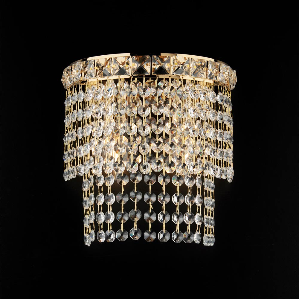 Élégante et étincelante, cette luxueuse applique murale en fer et laiton doré ornée de strass est un luminaire raffiné conçu pour sublimer les murs d'une lumière chaude et enveloppante. Sa structure compacte, rehaussée de cascades de strass lumineux , crée un jeu de reflets suggestif qui confère à la pièce une atmosphère sophistiquée et charmante.