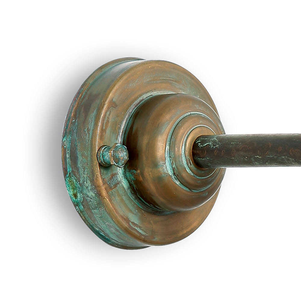Cette applique murale d'extérieur allie à la perfection tradition artisanale et raffinement intemporel . Sa structure en laiton , aux finitions antiques , lui confère une allure chaleureuse et authentique, idéale pour sublimer les espaces extérieurs au style classique , rustique ou industriel chic .