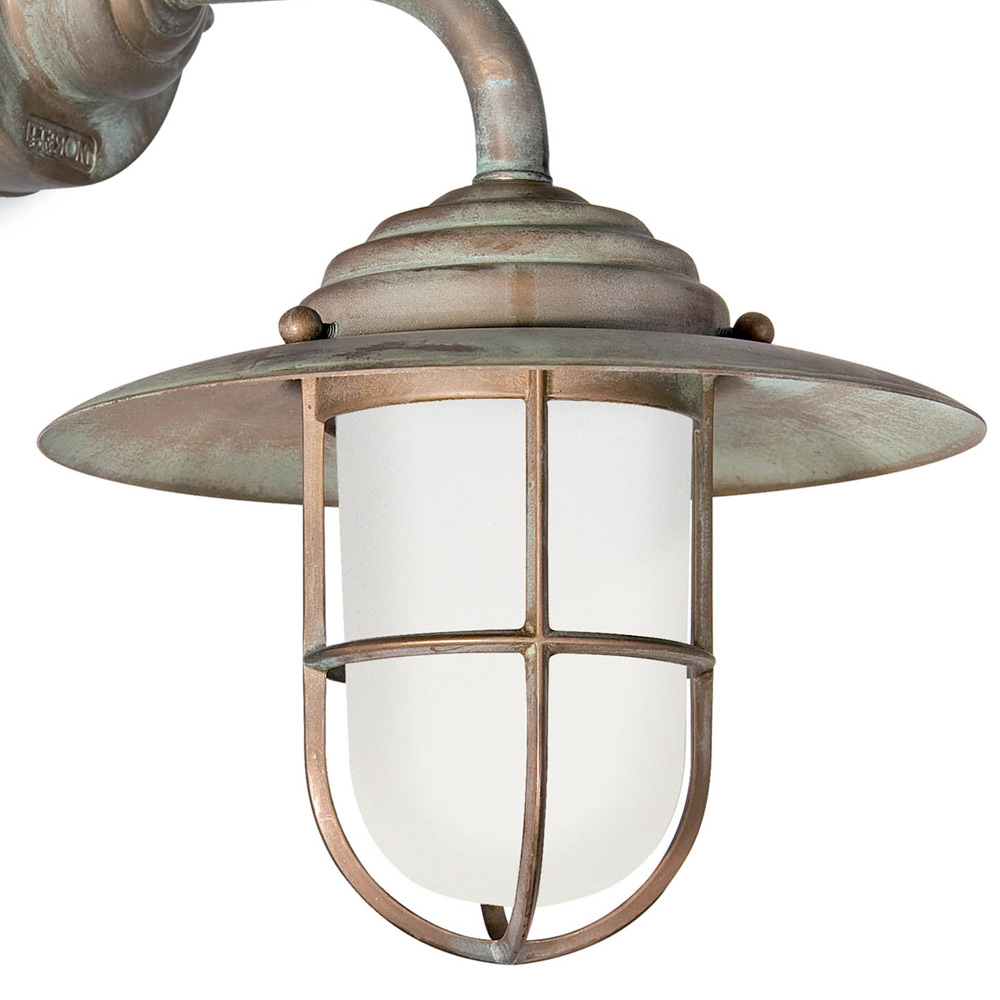 Applique murale extérieure vintage en laiton, verre opale - Elfico