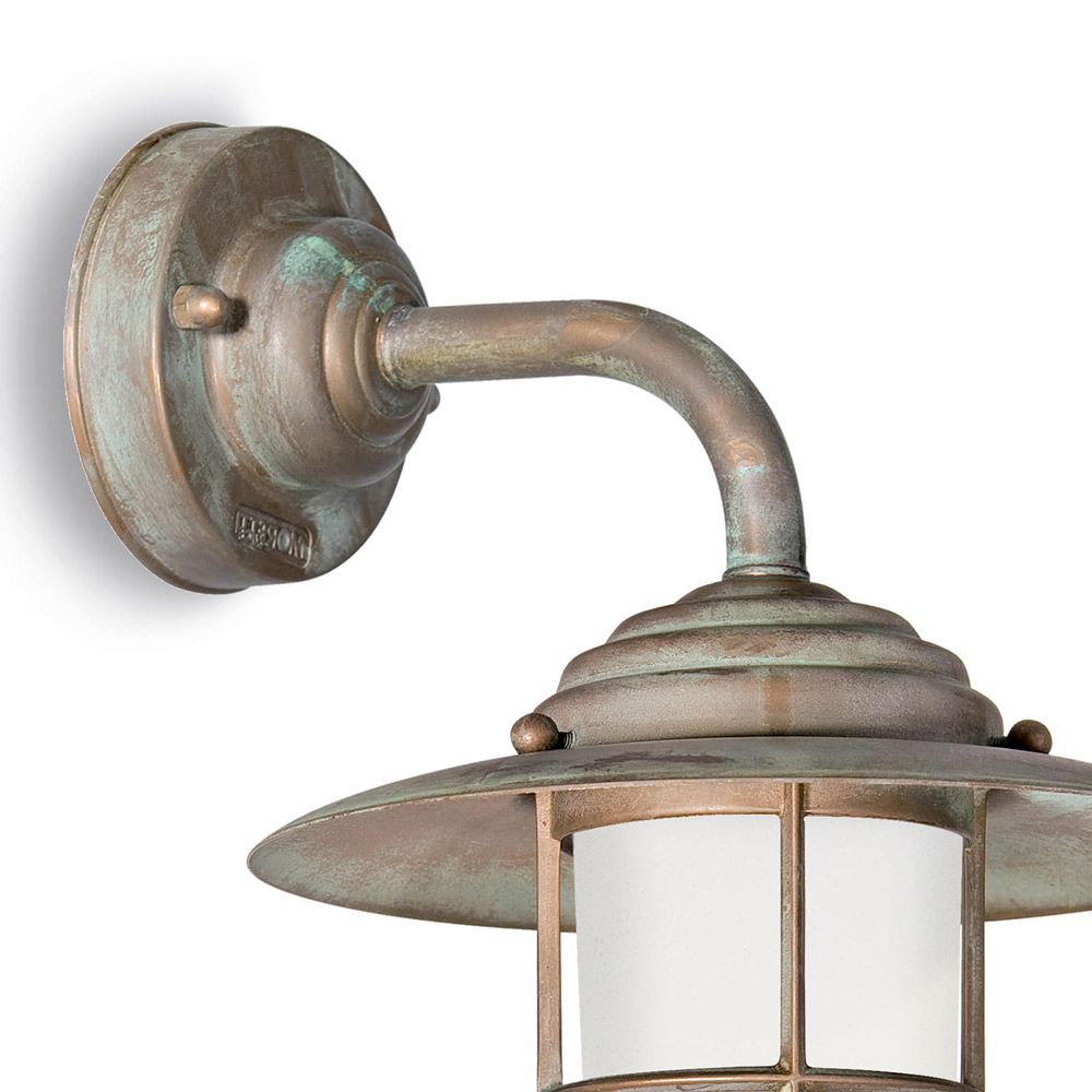 Applique murale extérieure en laiton antique avec verre opale