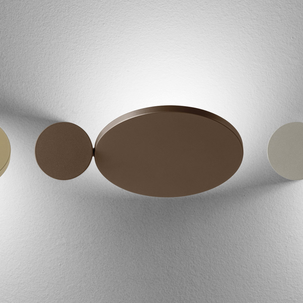 Cette applique murale est une véritable œuvre d'art lumineuse , alliant design graphique et fonction décorative en un seul geste. Composée de formes géométriques essentielles , elle joue avec des disques et des ovales superposés qui, une fois allumés, créent un effet lumineux doux et saisissant sur le mur.