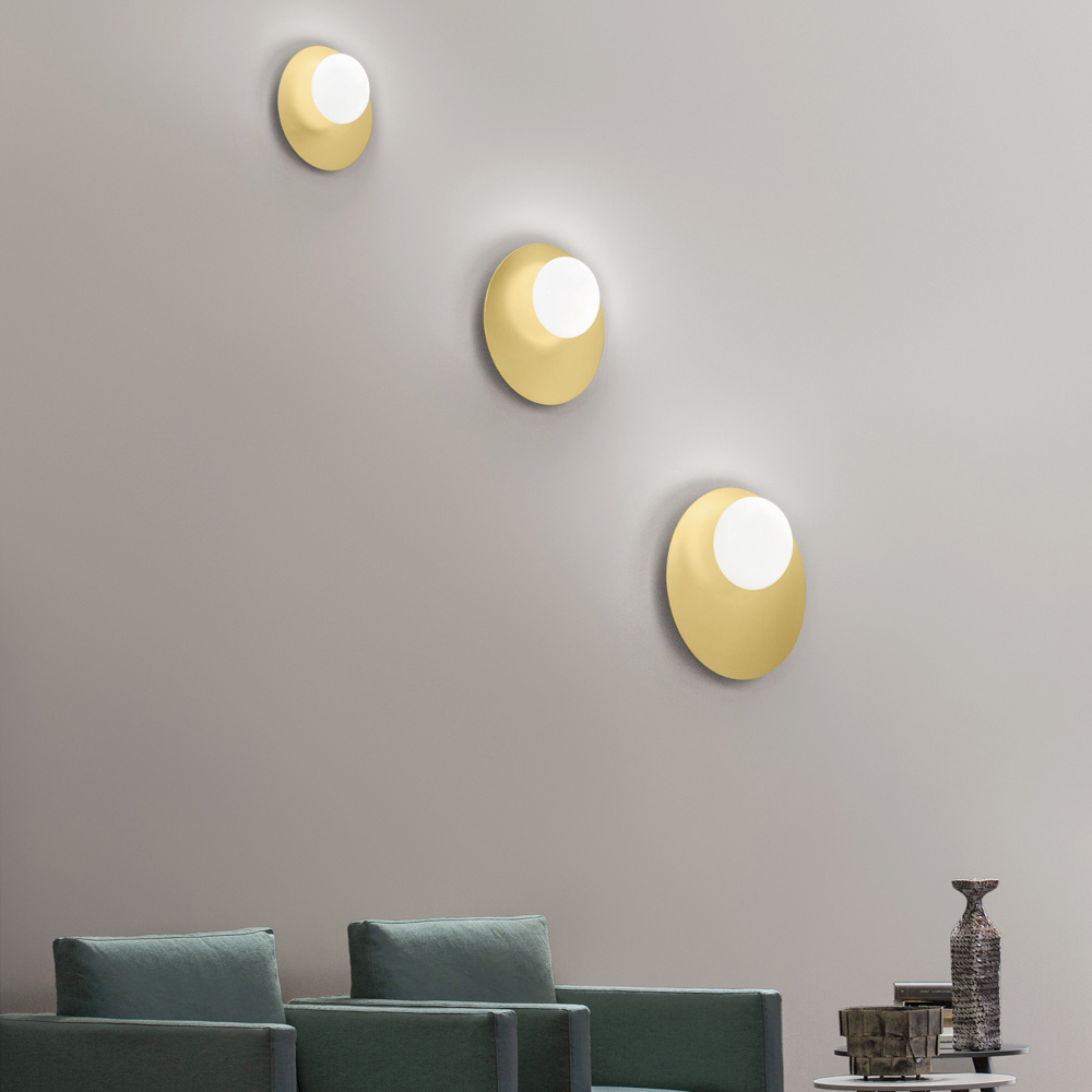 Cette applique murale est un véritable exemple de design minimaliste et élégant , parfaite pour ceux qui souhaitent embellir leurs espaces avec des lignes épurées et des matériaux raffinés . Sa structure métallique ronde entoure un diffuseur sphérique en verre blanc, créant un agréable contraste entre forme géométrique et lumière douce .