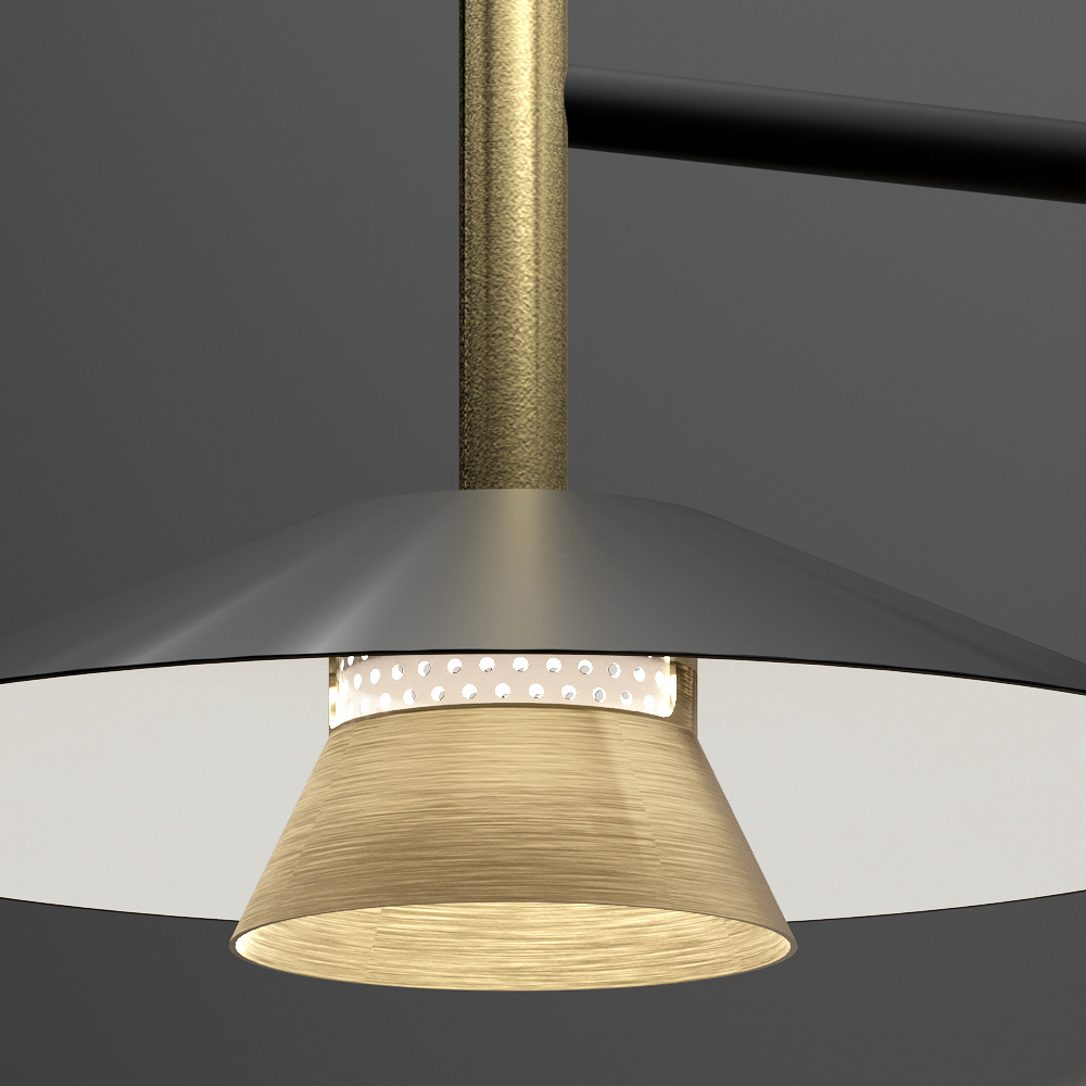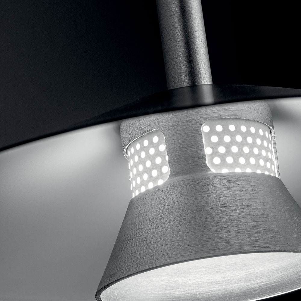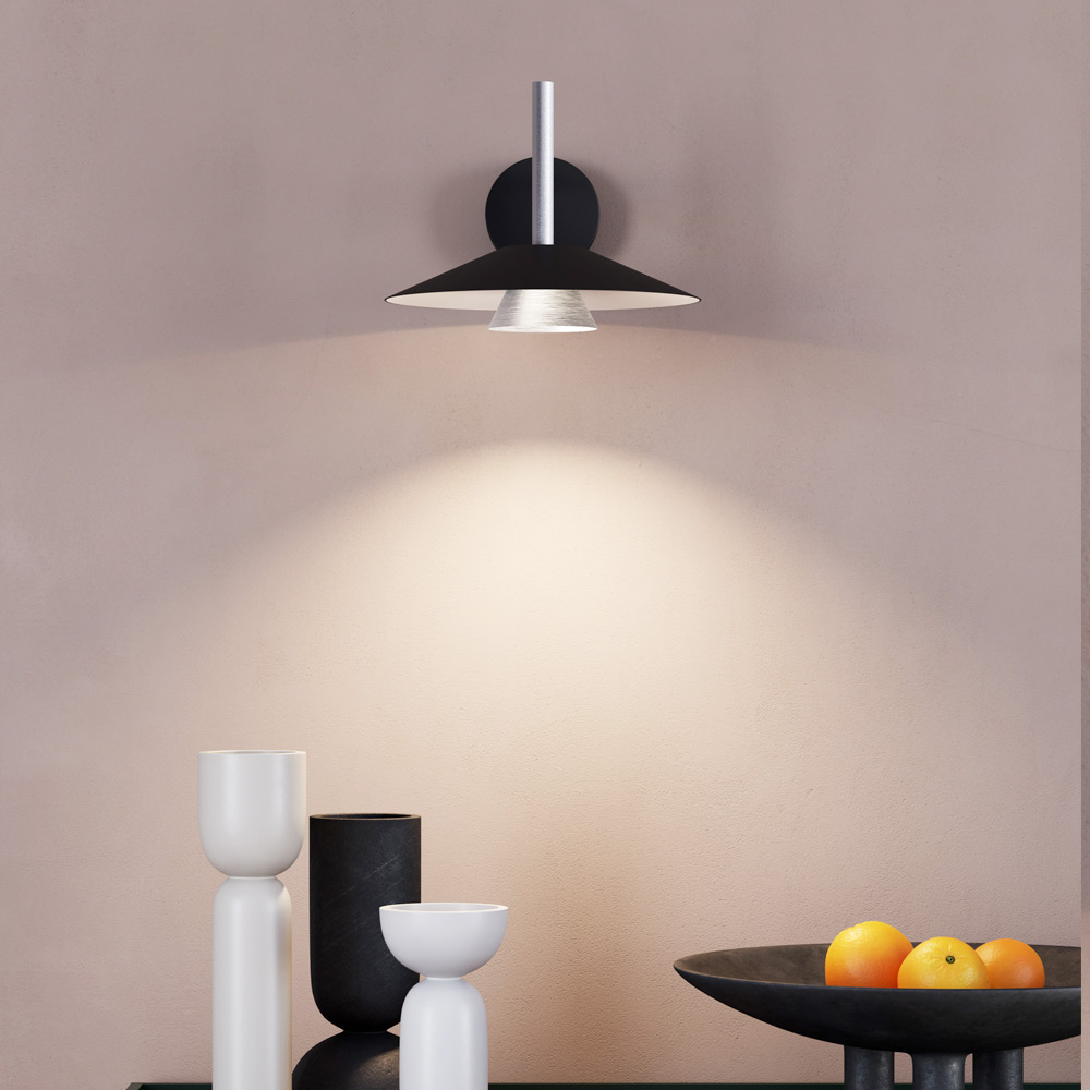 Cette lampe allie parfaitement design contemporain et élégance industrielle , conçue pour les amateurs de détails raffinés et d'une esthétique audacieuse. Sa structure géométrique, avec son diffuseur conique et son grand disque réfléchissant, crée un fascinant jeu de volumes et de contrastes , assurant une lumière directionnelle et enveloppante .