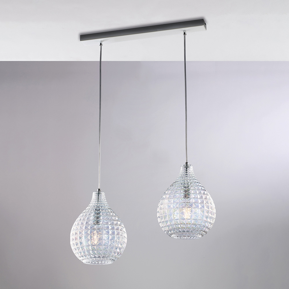 Atlas - Lampe design en verre et métal avec pendentifs effet cristal