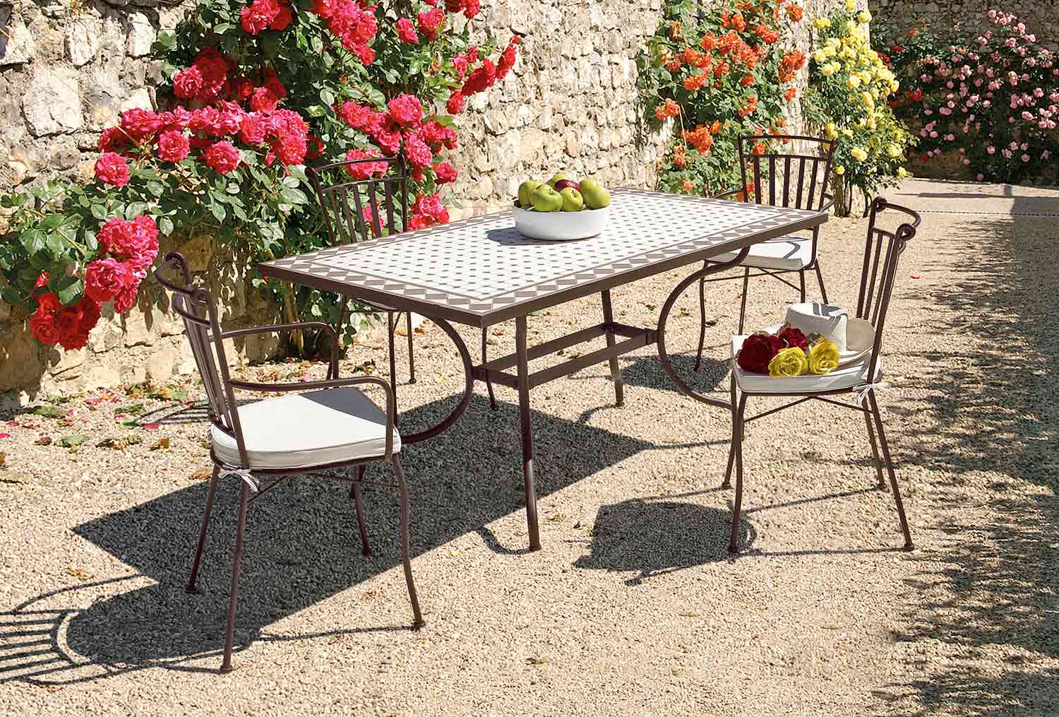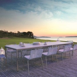 Et pour un petit déjeuner, déjeuner ou dîner inoubliable et magique dans le jardin, nous vous proposons une large sélection de tables avec plateau en verre ou en céramique, rectangulaires, rondes ou ovales à combiner avec des chaises coordonnées avec le design de votre table préférée.