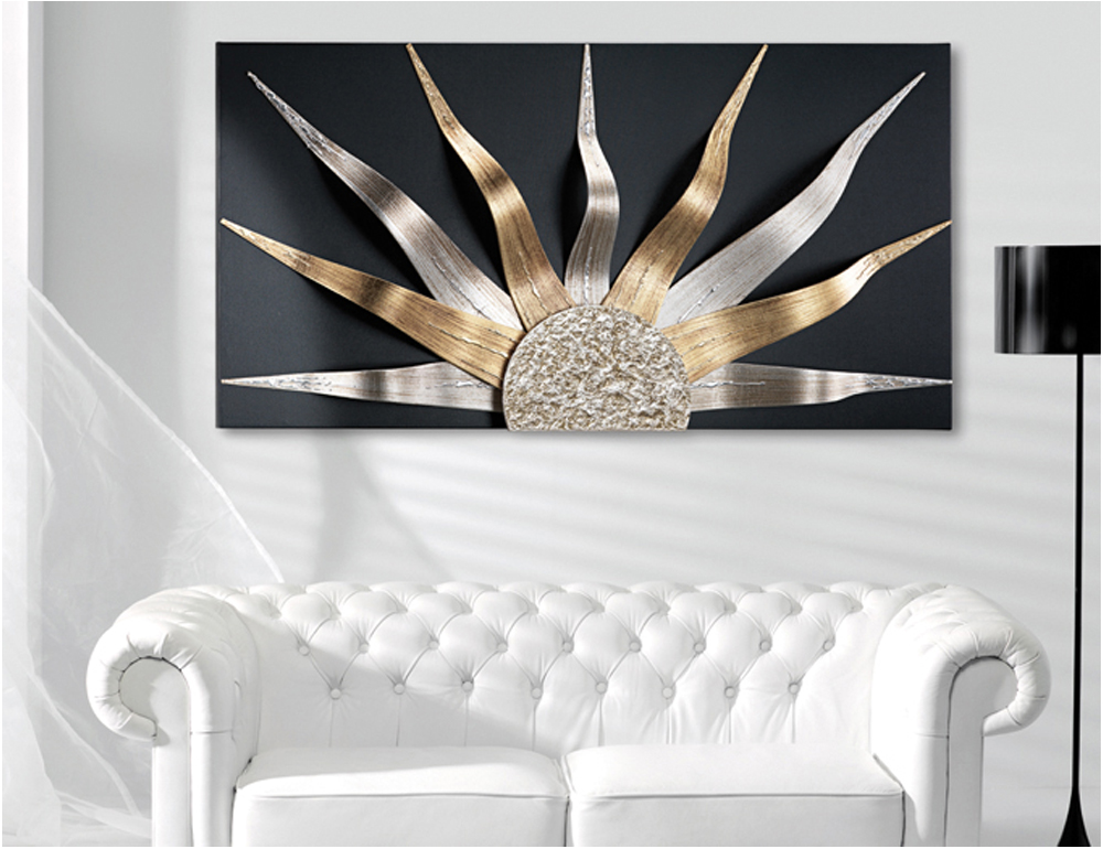 Un exemple est le modèle Melitea de Viadurinidecor avec une structure de forme marron intense et des boutons chromés. Ou, vous pouvez choisir parmi les nombreux paysages floraux d'Artempo, où vous pouvez créer une impression sur toile personnalisée de n'importe quel paysage ou sujet, dans la taille que vous souhaitez. Si vous avez une maison importante ou que vous avez besoin de meubler une salle de réunion, vous avez besoin d'une sculpture - un meuble efficace. L'élégant modèle Circles ou Molecole de Viadurini décor avec une structure perforée décorée à la main et des feuilles en relief est recommandé.