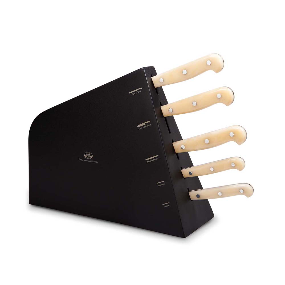 Notre produit le plus vendu est certainement le Convivio Nuovo, un couteau de table né en 1997, résultat d'une opération de rétro-innovation d'un vieux couteau (années 1930-1900) typique de Scarperia. Il se caractérise par une forte innovation dans l'utilisation des matériaux et un design innovant qui le rend agréable à utiliser.