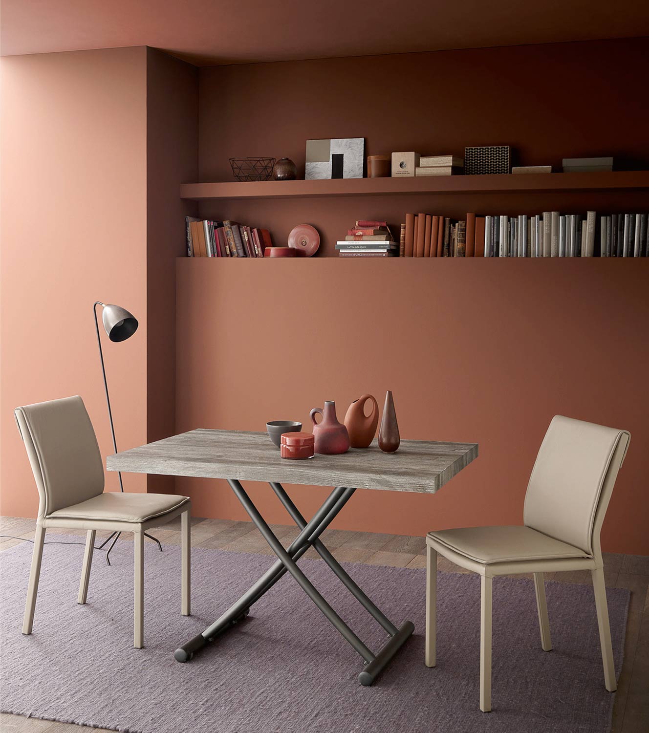 Ces produits sont fabriqués par des artisans italiens qualifiés avec une grande passion pour le design. Les matériaux utilisés sont de la plus haute qualité. En particulier, ces tables relevables sont fabriquées avec une structure métallique et un plateau en bois.