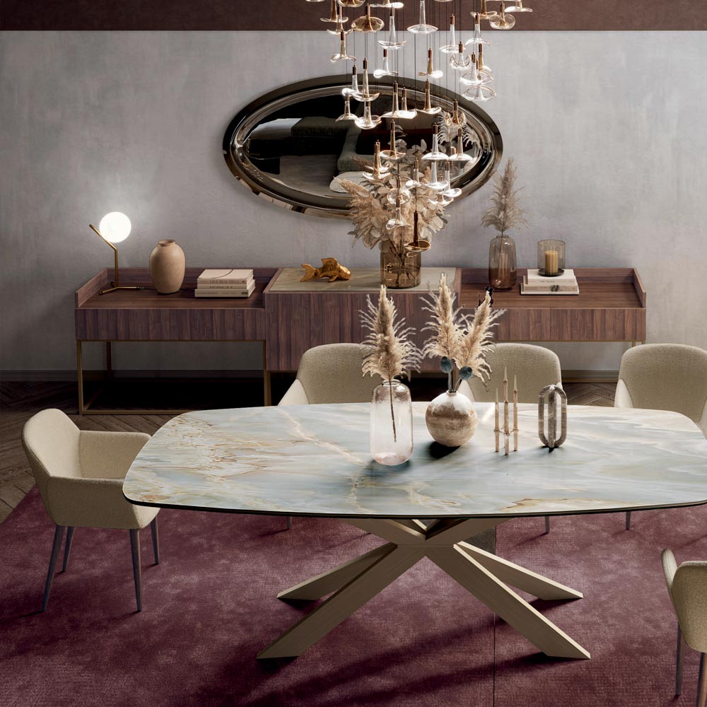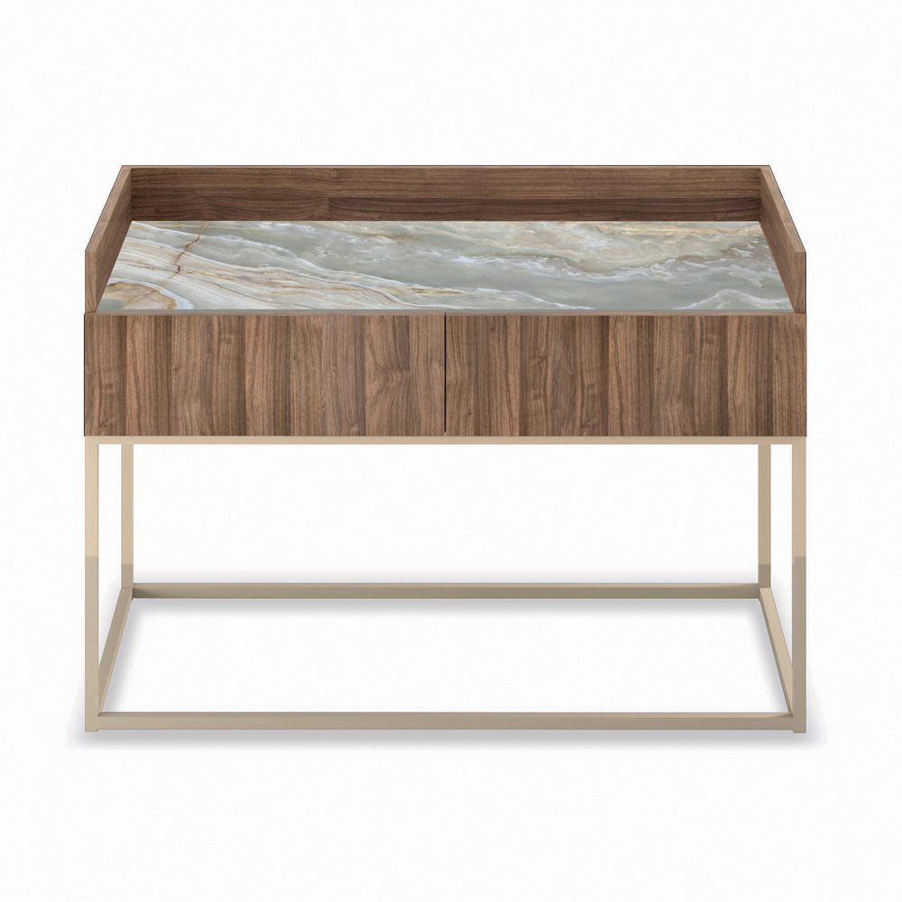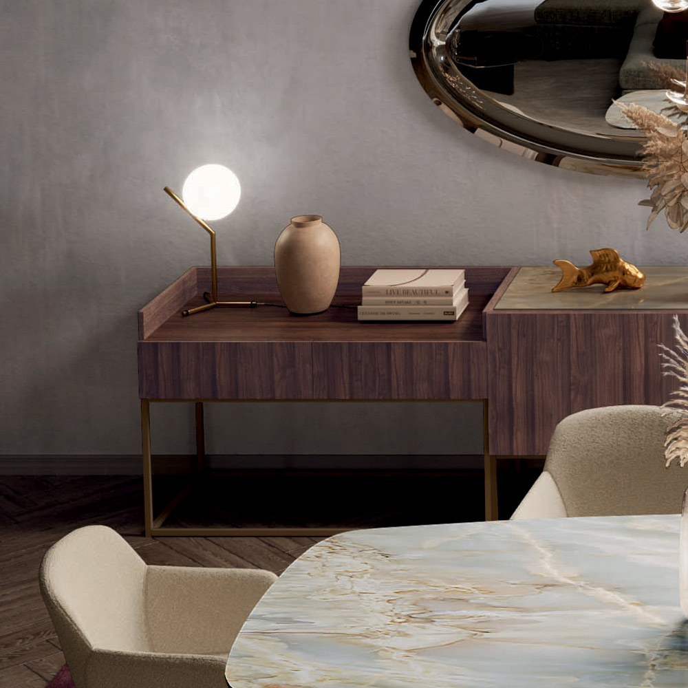 Buffet de salon entièrement réalisé en panneaux lattés de sapin de 18 mm d'épaisseur plaqués intérieurement et extérieurement en noyer Canaletto peint dans la finition noyer Canaletto. Panneau arrière renforcé et fini et plateau en céramique ou en bois . Portes avec ouverture push&pull . Le piètement est en acier finition champagne avec pieds réglables. Cet élégant complément décoratif pour le salon offre une grande fonctionnalité ainsi qu'une esthétique fascinante et intemporelle , se révélant être la solution d'ameublement idéale pour ceux qui recherchent un meuble à la fois élégant et pratique. Un design polyvalent et original conçu pour avoir diverses utilisations dans différentes zones de la maison, complétant le mobilier de manière exclusive en fonction de vos goûts et de vos besoins.