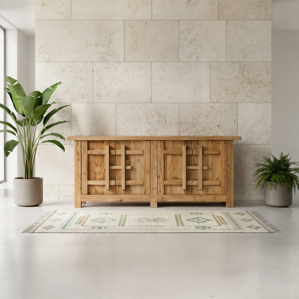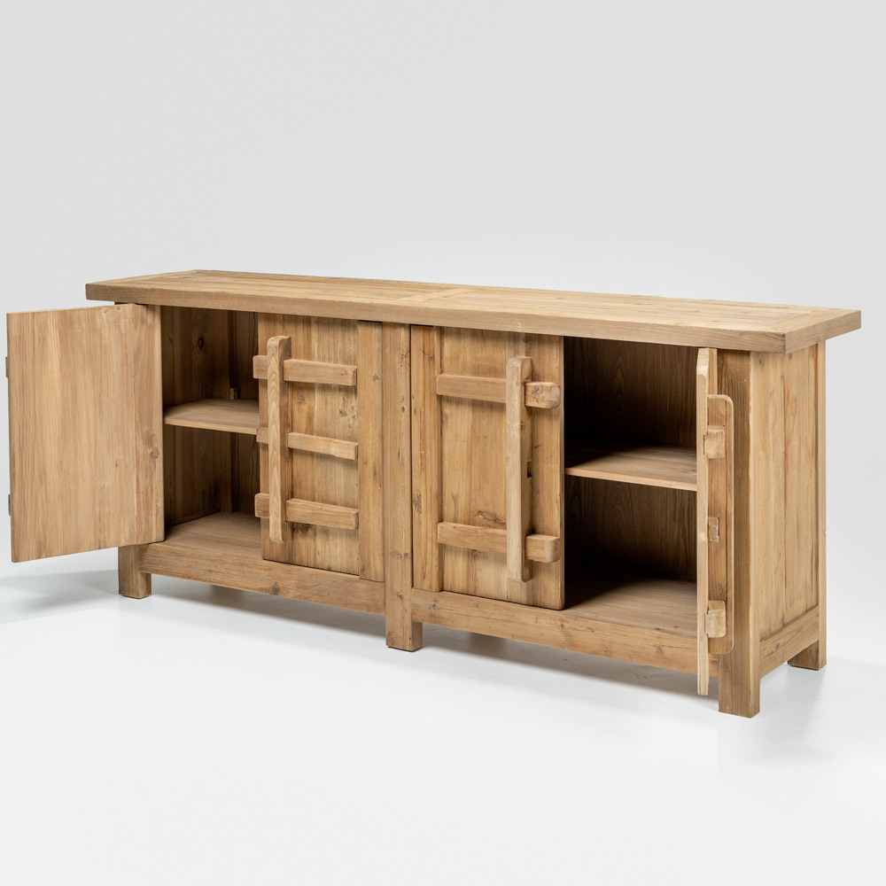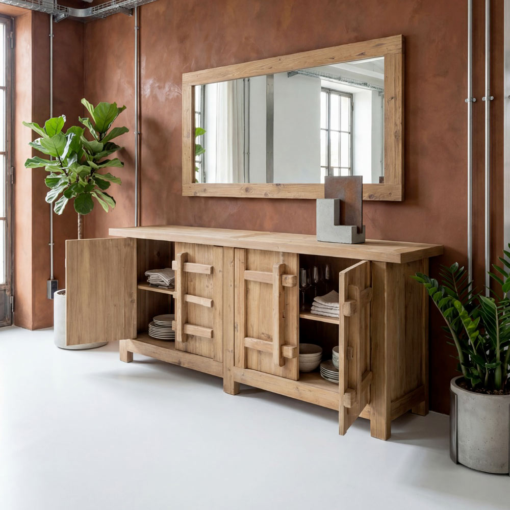 Ce buffet en pin naturel vieilli possède un caractère authentique et texturé, idéal pour les intérieurs rustiques, champêtres ou de style naturel. Sa finition vieillie met en valeur le grain du bois et ses imperfections, rendant chaque pièce unique et pleine de personnalité.