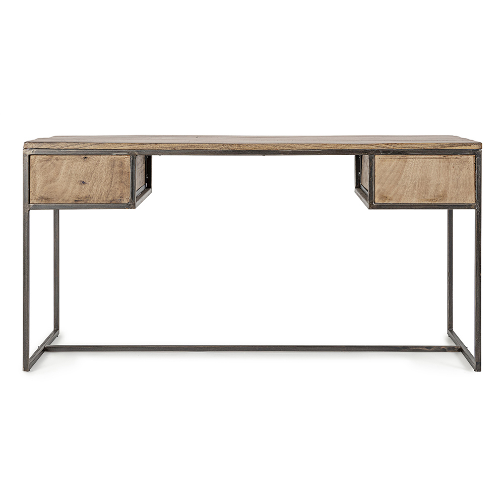 Bureau en acier et bois d'acacia avec 2 tiroirs de style industriel.