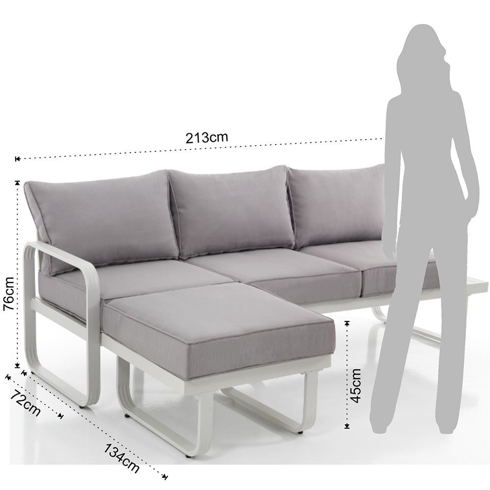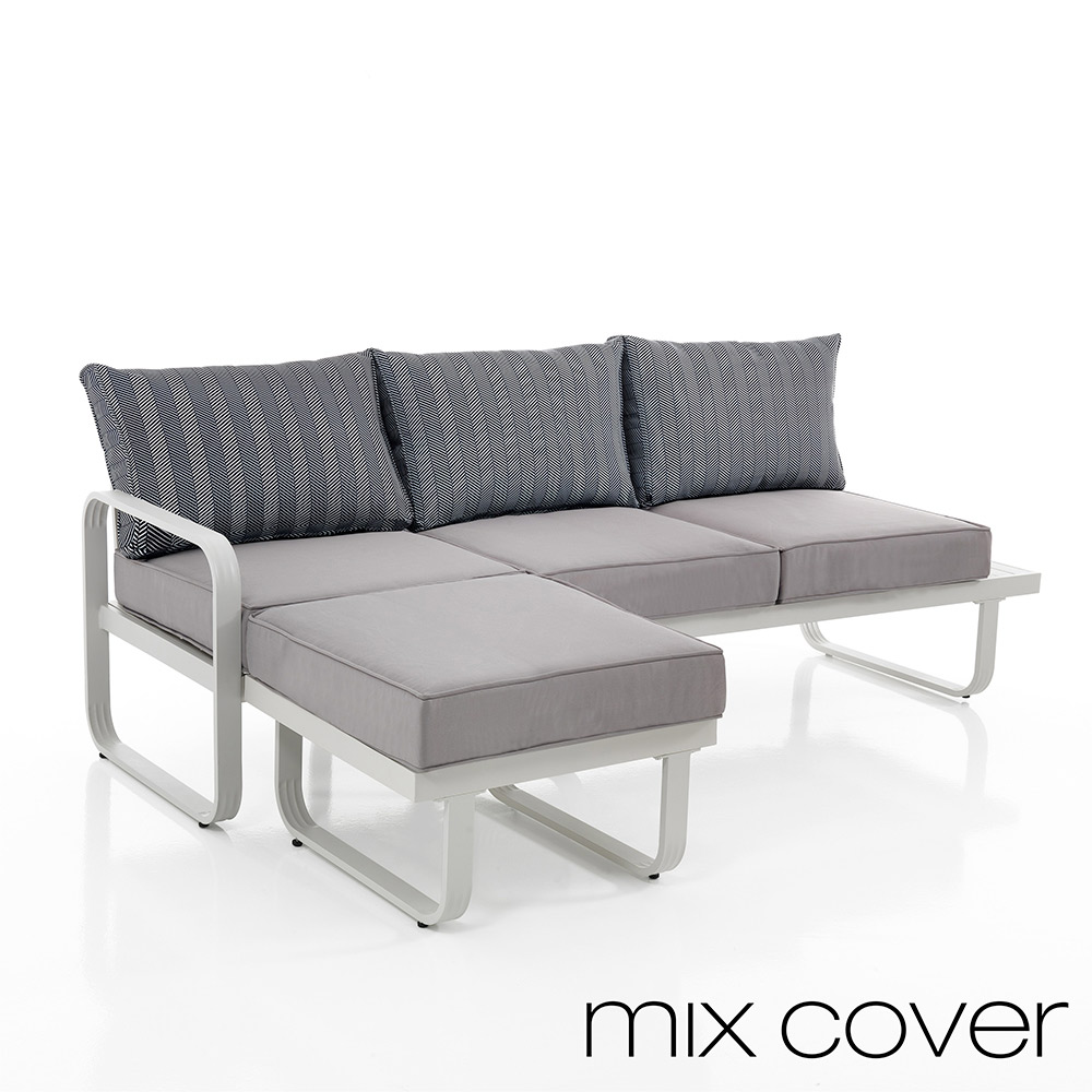 Ce canapé avec pouf pour le jardin représente le summum de l'élégance fonctionnelle . Ses lignes modernes, soutenues par une structure en aluminium, dégagent un charme contemporain et raffiné . La modularité du pouf s'accorde parfaitement avec le canapé, offrant la possibilité d'étendre l'espace d'assise ou de l'utiliser comme repose-pieds, pour une polyvalence inégalée . Des matériaux de haute qualité garantissent une durabilité et un entretien facile , essentiels pour une utilisation en extérieur. Cet ensemble est plus qu'un simple meuble ; c'est une déclaration de confort et de style qui invite à des moments conviviaux, à la détente après une longue journée ou à recevoir des invités dans une atmosphère d'hospitalité et de luxe discret .