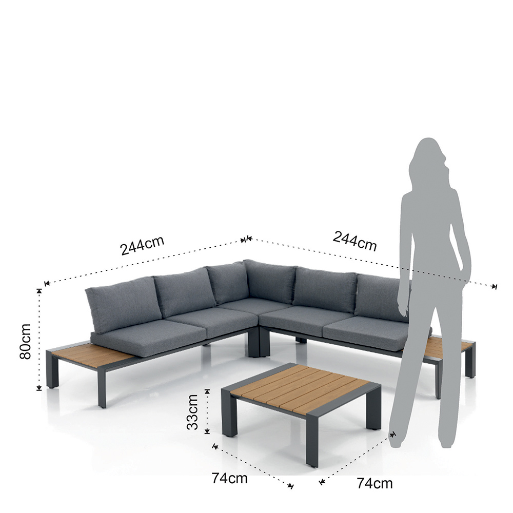 | Dimensions | canapé : 244x244x80 cm / table basse : 74x74x33 cm |