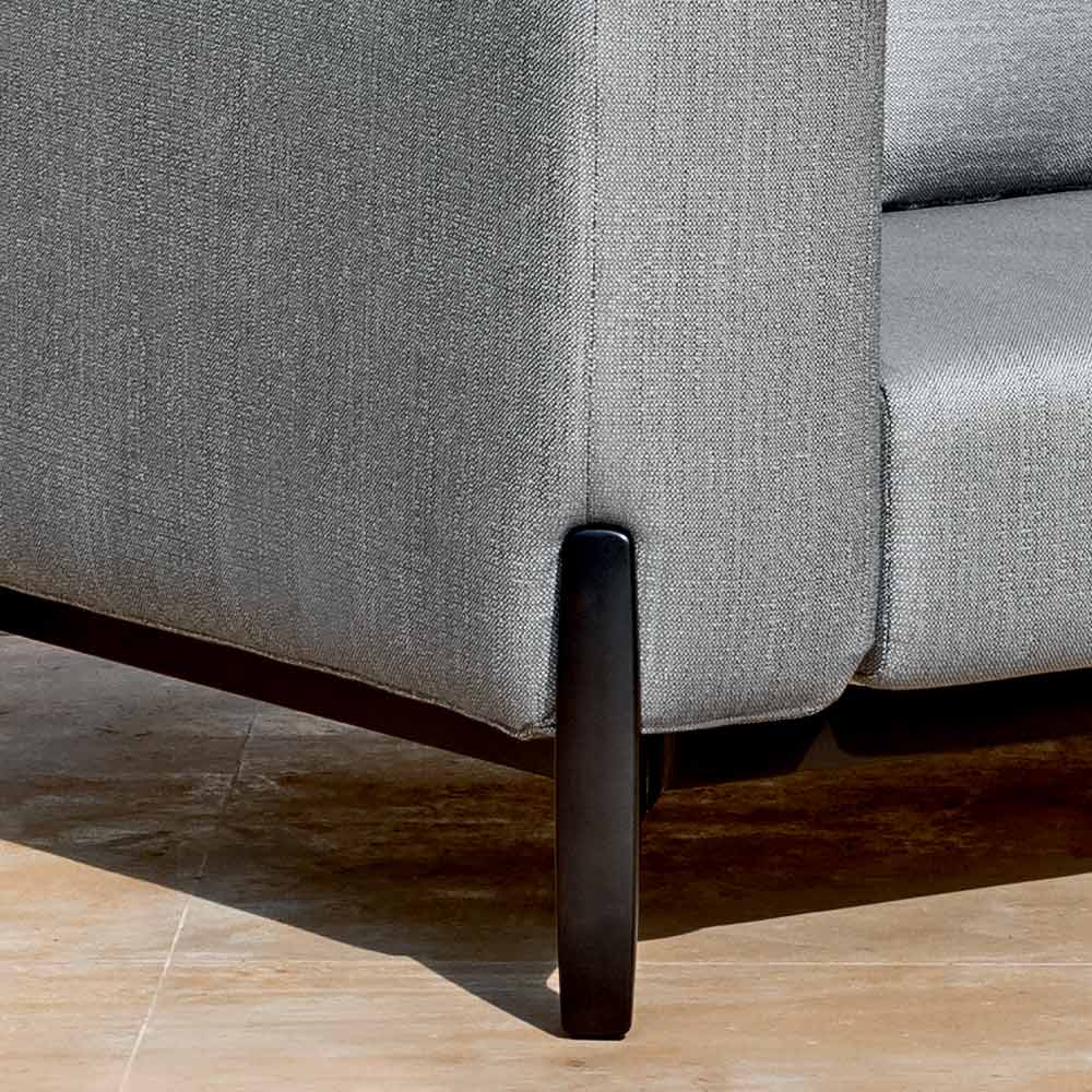 La collection se caractérise par le détail du pied en aluminium comme point focal combiné à la rigueur formelle et modulable du rembourrage, pour vivre le plein air en termes de détente et de convivialité maximum, assis sur le canapé, autour d'une table ou allongé sur le transat. .