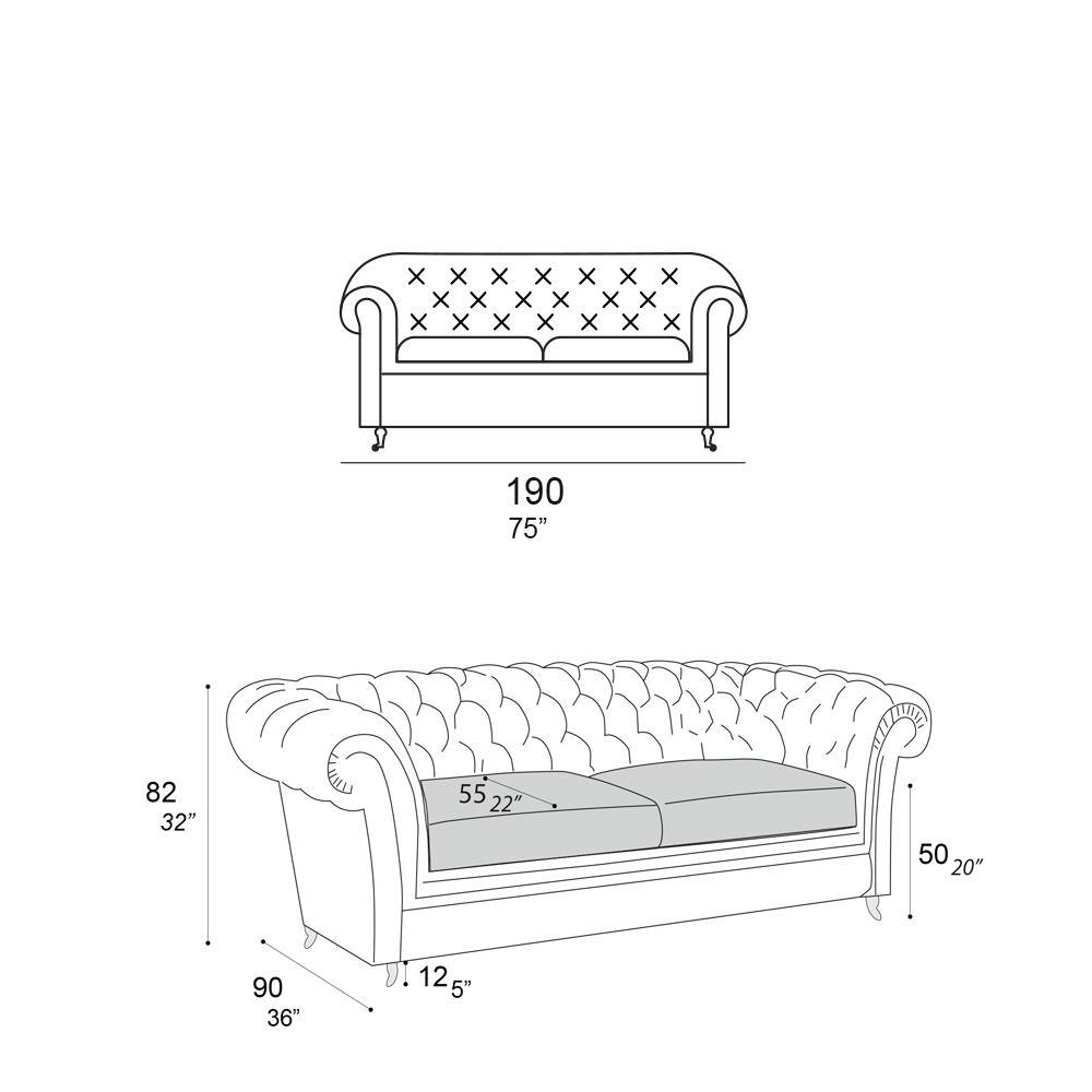 Tailles disponibles :- longueur : 190 x profondeur : 90 x hauteur : 82 cm