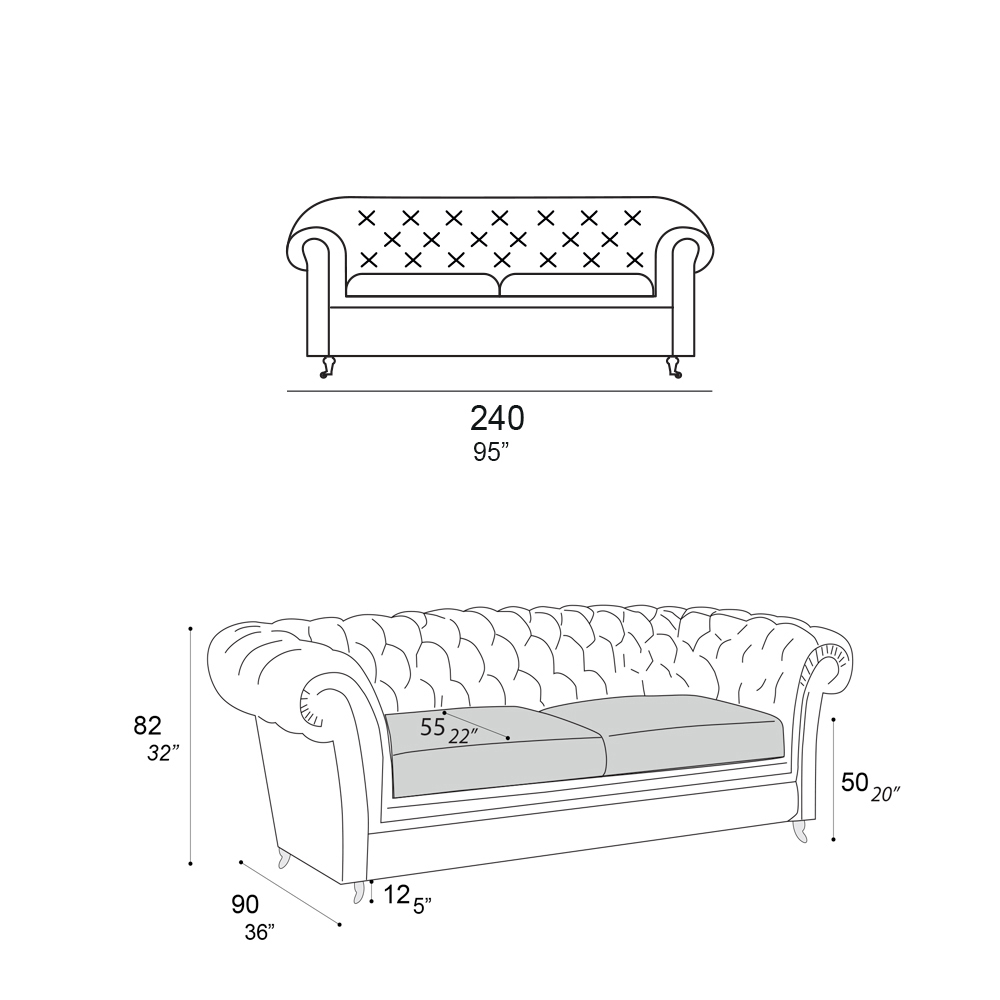 - longueur : 240 x profondeur : 90 x hauteur : 82 cm