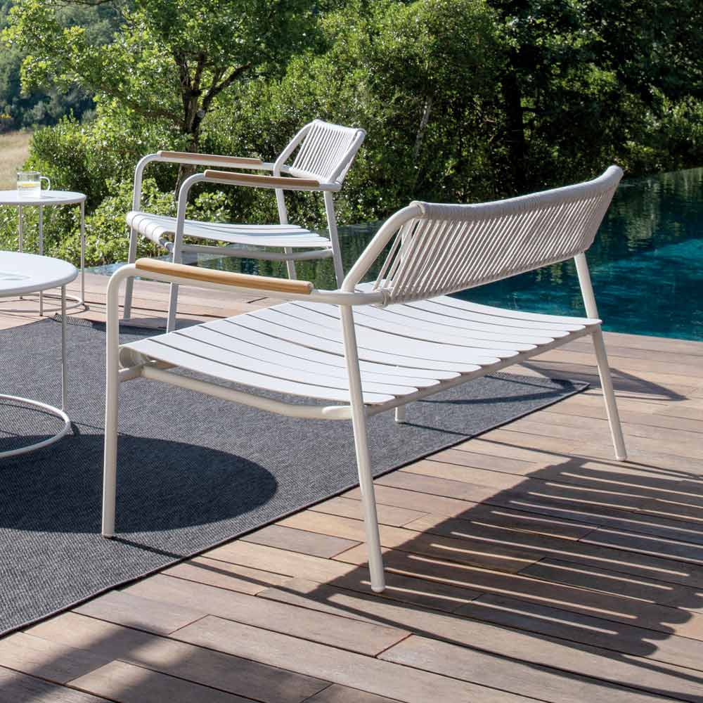 Sa structure légère et robuste est conçue pour offrir un confort optimal. Son assise ergonomique et son dossier profilé en corde assurent un soutien confortable et relaxant. Les lattes en aluminium lui confèrent un look dynamique et moderne, tandis que ses finitions apportent une touche d'élégance et de raffinement.