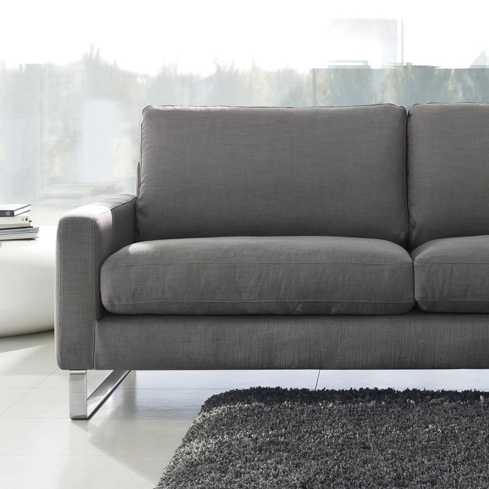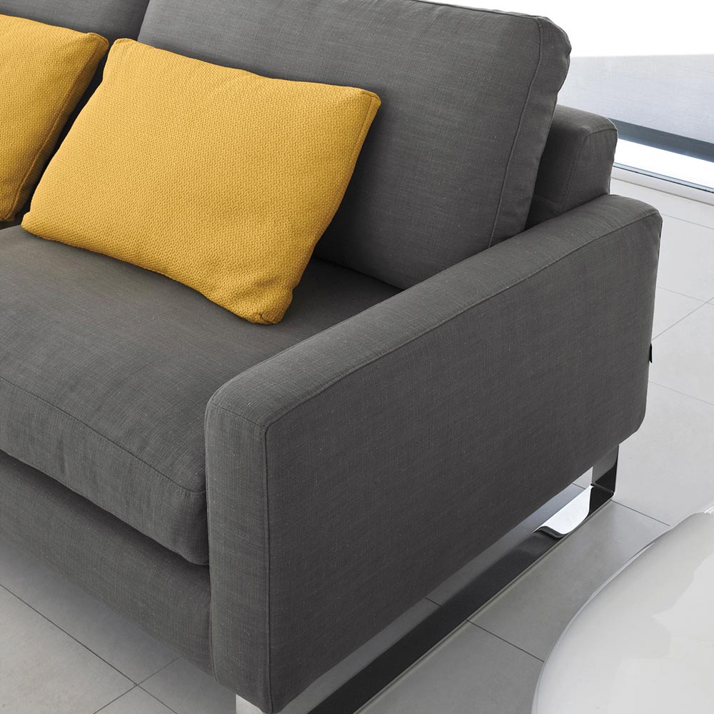 de patins en métal chromé. Le canapé incarne l'essence du minimalisme transformé en fonctionnalité. Avec son design unique, il offre confort et élégance, promettant de toujours être à la pointe de l'esthétique et du confort. La large gamme de revêtements et de couleurs en fait un meuble polyvalent pour tout environnement.