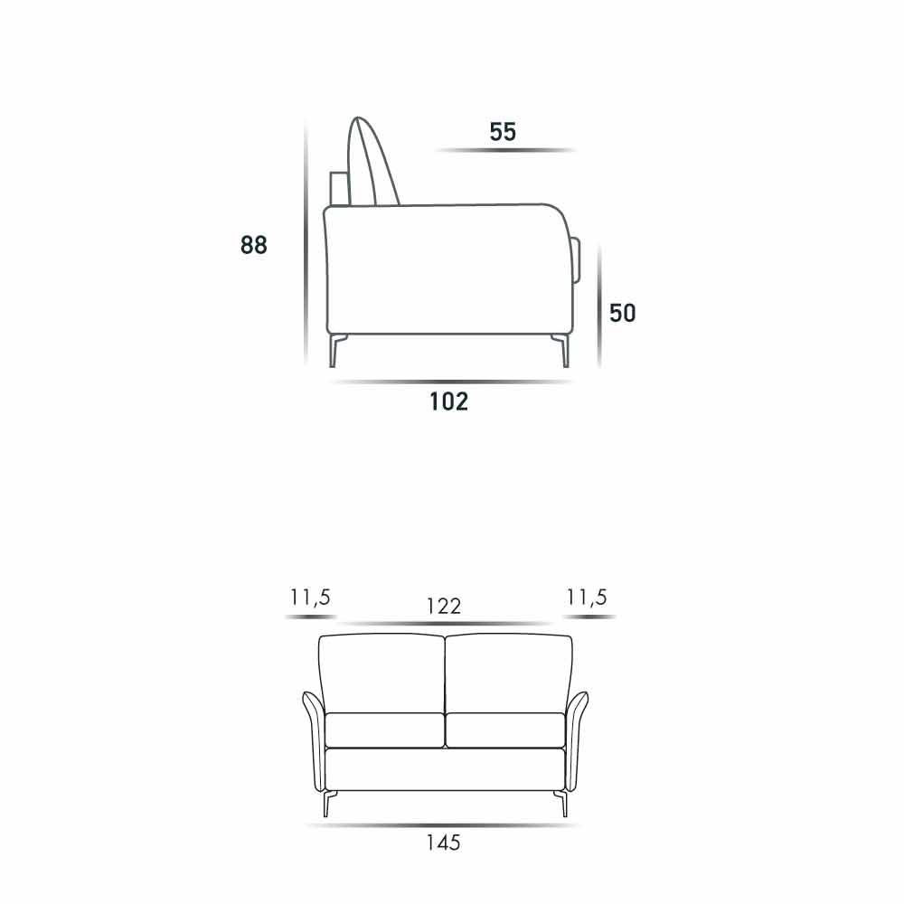 Canapé deux places design moderne L.145cm écocuir/tissu Erica, produit en Italie