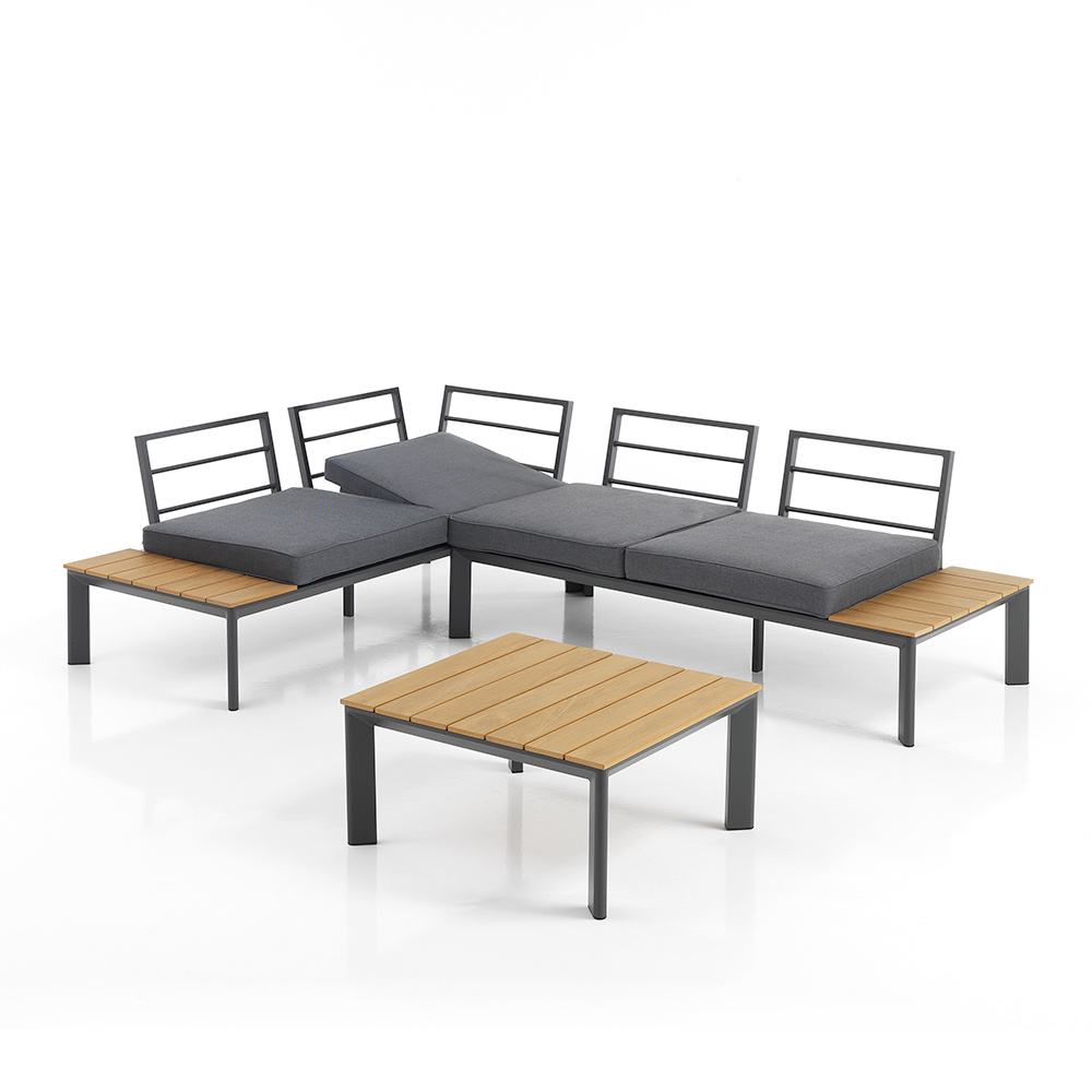 Le dossier réglable du salon vous invite à trouver votre coin de confort idéal, que ce soit pour lire, bronzer ou socialiser. La table centrale est parfaite pour accueillir des boissons rafraîchissantes, des apéritifs ou votre livre préféré, ce qui en fait la pièce maîtresse de tout rassemblement convivial en plein air .
