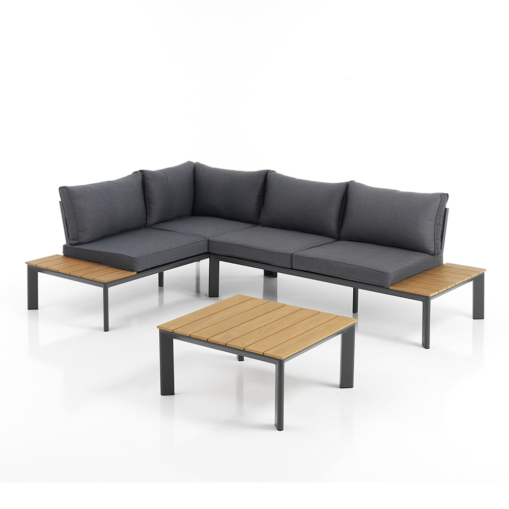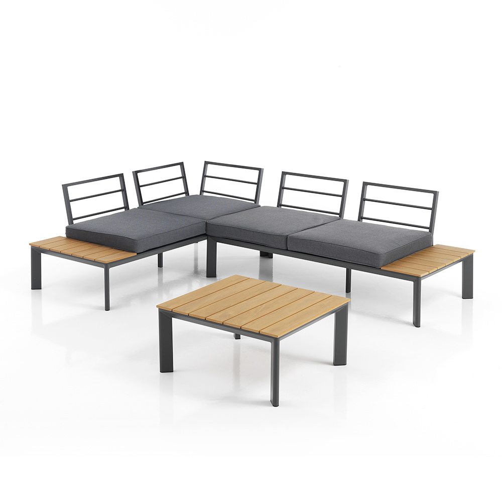 Ce salon de jardin avec table basse incarne un luxe abordable et un design polyvalent . La combinaison unique d'aluminium et de polywood offre une esthétique élégante et contemporaine qui s'intègre parfaitement aux espaces modernes et traditionnels. Les coussins en polyester gris offrent non seulement un confort sublime, mais ajoutent également une touche de simplicité sophistiquée à l'ensemble.