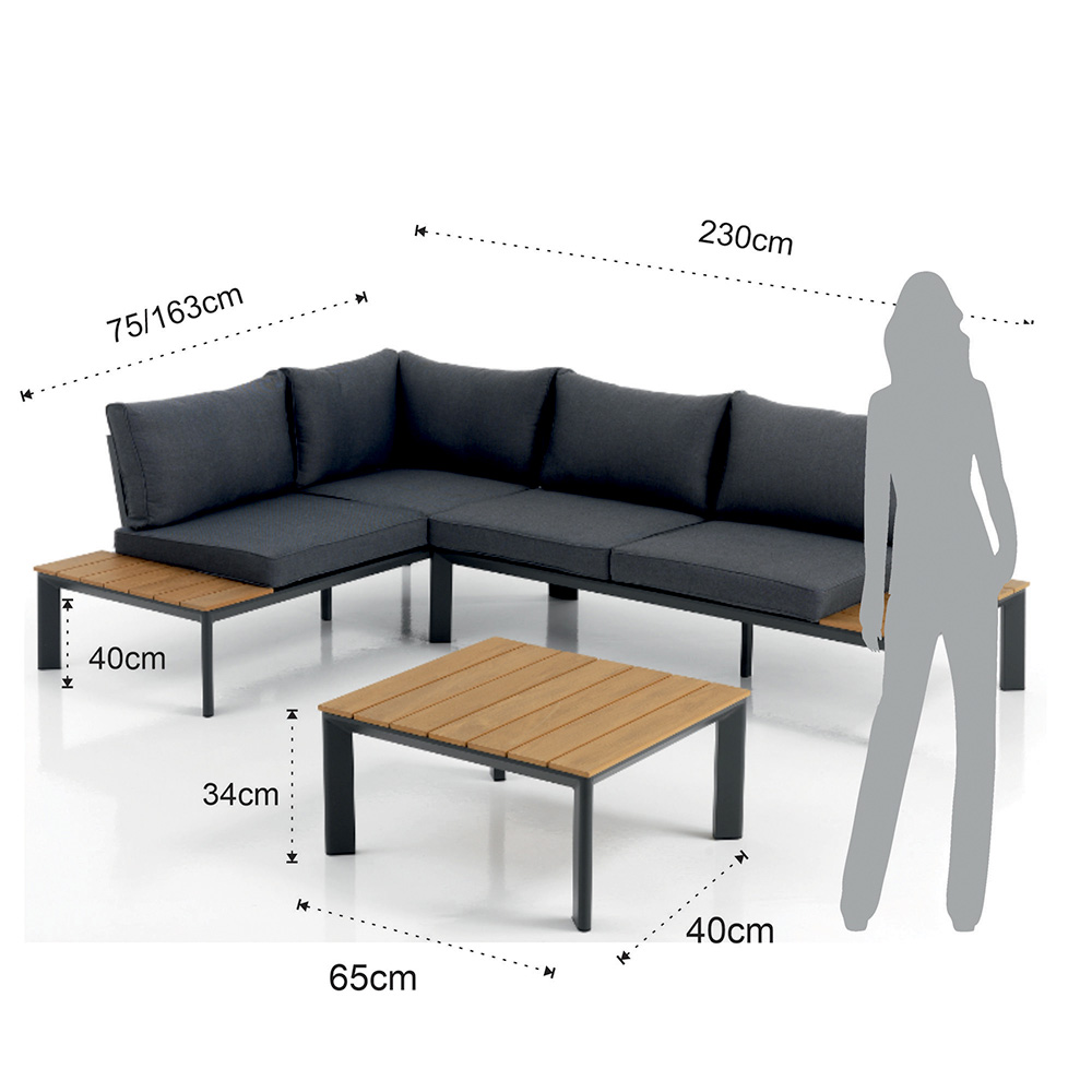 | Dimensions | canapé : 230x75/163x76 cm / table basse : 65x40x34 cm |