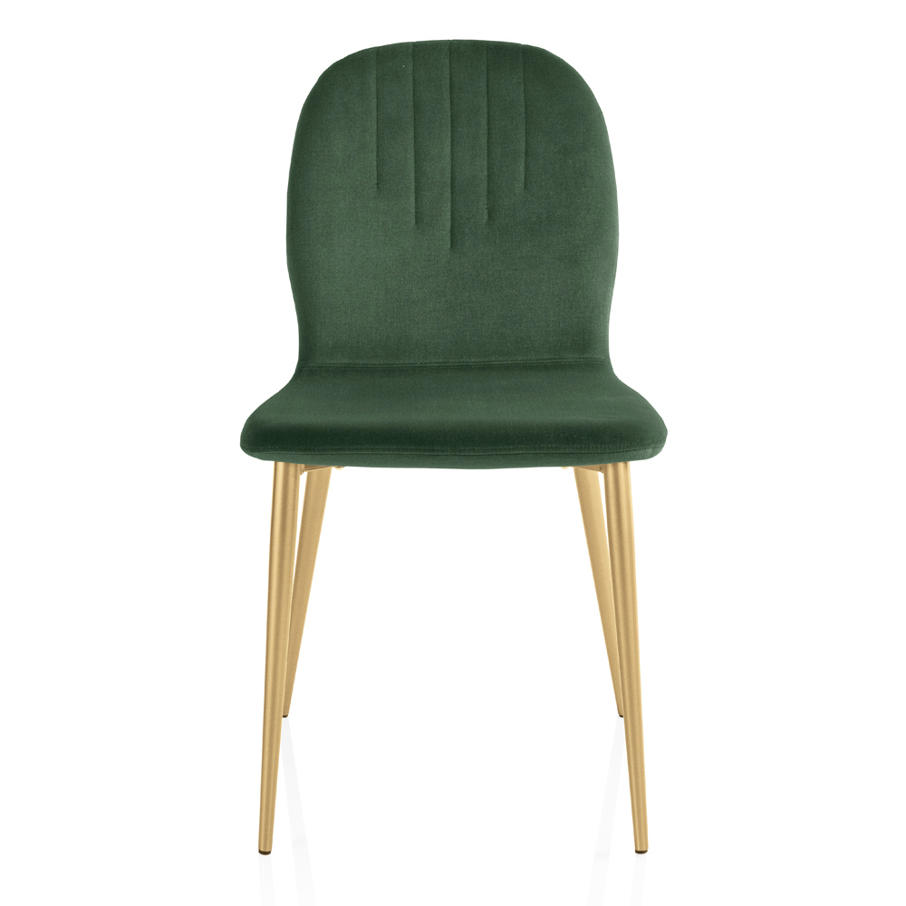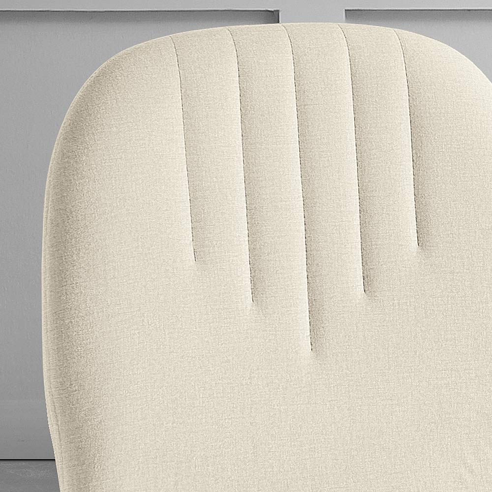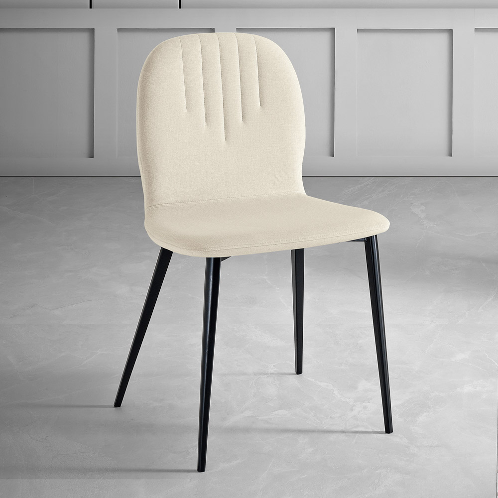 Le détail matelassé sur le dossier n'est pas seulement un régal pour les yeux, mais offre également un soutien supplémentaire, ajoutant une dimension de confort aussi fonctionnelle que belle. Les pieds en métal se dressent élégamment, donnant à la chaise une base solide et un style moderne qui peut se fondre sans effort dans n'importe quel décor.