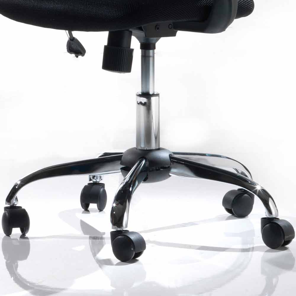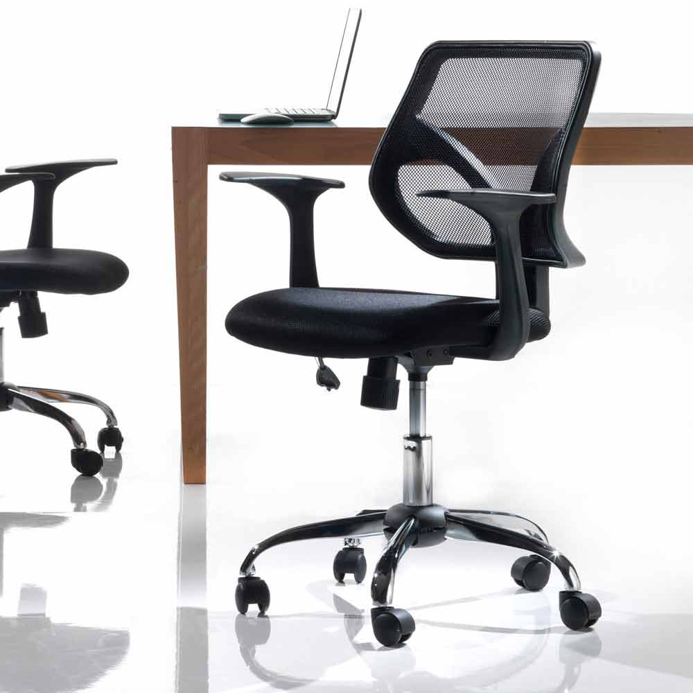 La chaise de bureau pivotante Giovanna est idéale pour offrir la liberté de mouvement et le plus grand confort à ceux qui l’utilisent; elle se présente avec un siège pivotant à gaz, structure en métal chromé avec des roues en polyuréthane; assise en puma noir et dossier en technorete microforata noire.