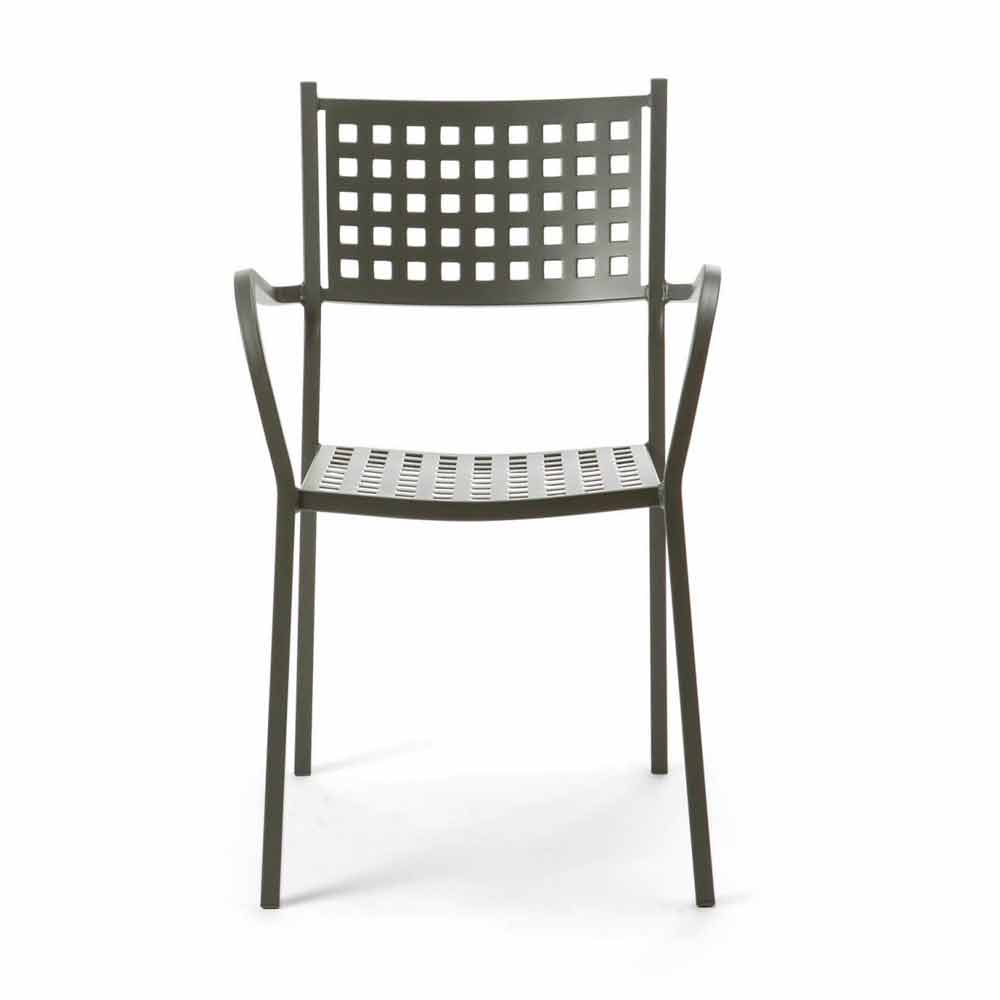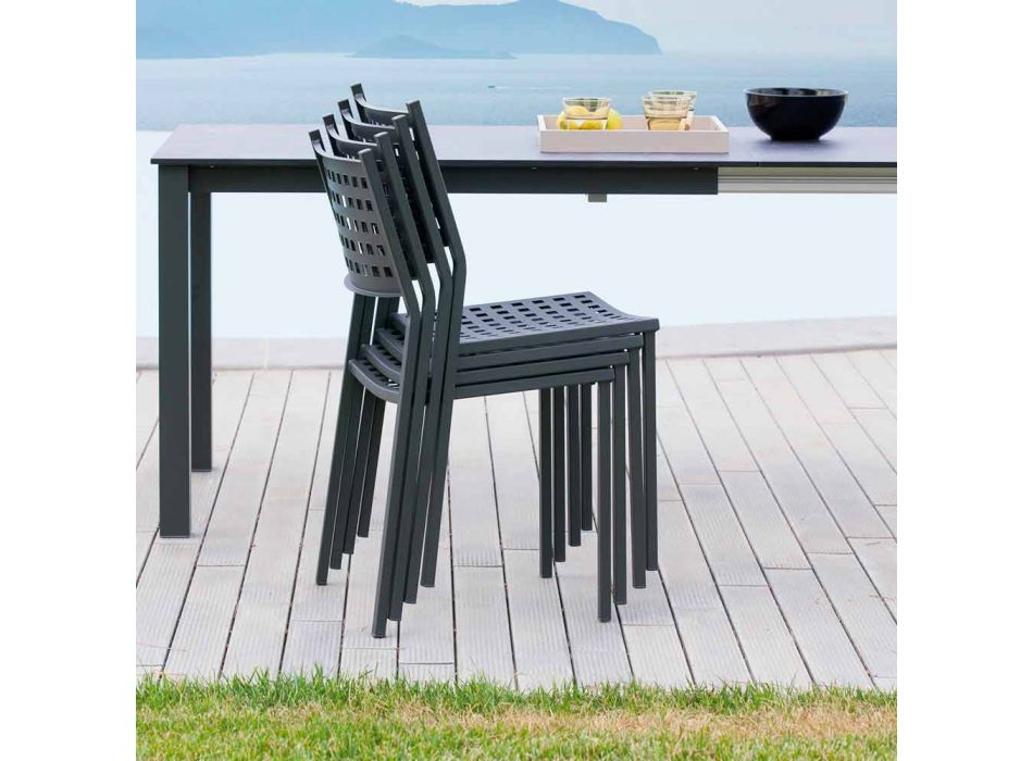 Chaise d'extérieur moderne en fer galvanisé thermolaqué, empilable, fabriquée en Italie, 8 pièces.