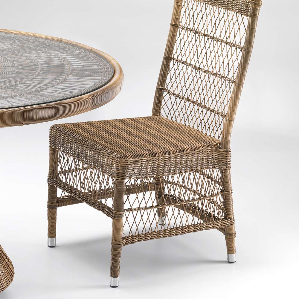 Le style de tissage est raffiné et délicat et, avec la très haute qualité des matériaux et ses formes décisives, cette chaise est parfaite pour l'ameublement intérieur et extérieur, aussi bien pour les environnements privés que contractuels tels que les terrasses, les vérandas, les jardins, mais ils trouvent également un emplacement parfait au bord de la piscine.