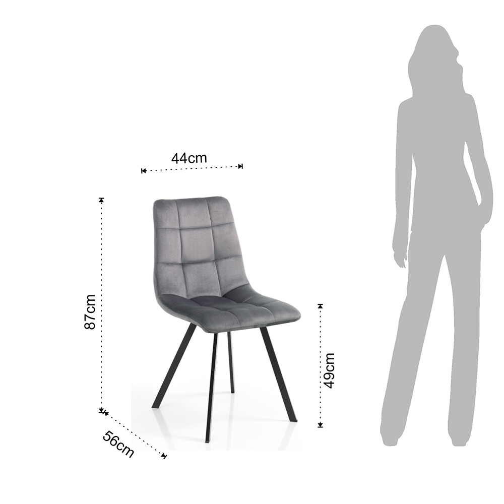 Chaise de cuisine avec pieds en métal peint en noir mat et assise rembourrée en tissu microfibre doux avec effet velours . Un design raffiné et contemporain caractérise ce meuble à l' âme raffinée, idéal pour compléter le style de votre espace de vie de manière exclusive, en l'enrichissant d'une touche de personnalité et d'élégance .
