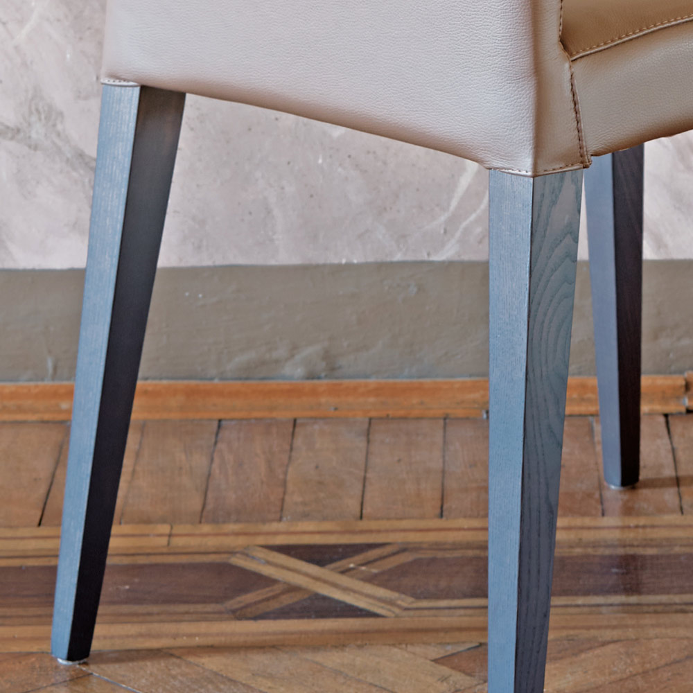 Chaise de salle à manger entièrement fabriquée en Italie , avec assise recouverte de cuir finition sable et structure en frêne teinté gris . Grâce à ses finitions simples et douces, c'est une idée parfaite pour tous ceux qui aiment meubler leurs salons, salles à manger et cuisines avec goût et style sans sacrifier la fonctionnalité et le confort.