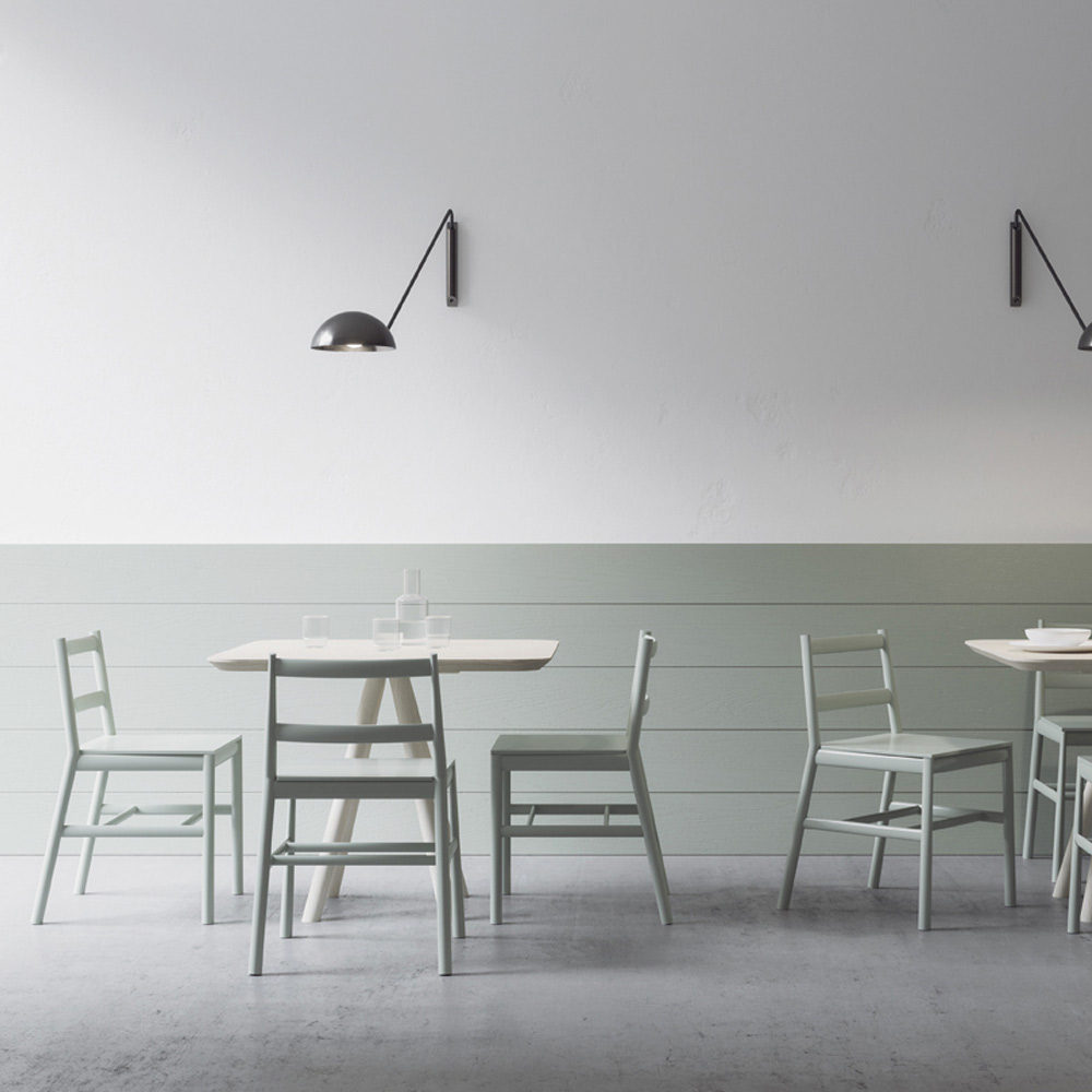 Chaise pour salle à manger ou cuisine fabriquée en Italie en bois de hêtre laqué. L'extrême simplicité devient le point fort de cet accessoire d'ameublement discret qui parvient à mélanger harmonieusement un look typique du passé avec une idée de contemporanéité, créant ainsi une solution capable de marier des environnements modernes mais aussi des pièces du mobilier le plus traditionnel dans lesquelles jouer sur différents styles pour donner vie à quelque chose d'original. Les lignes essentielles qui caractérisent le design intérieur font de cette chaise une idée extrêmement polyvalente , capable de s'adapter aux espaces de vie, aux cuisines mais aussi aux environnements contractuels où elle se distingue par son style et sa personnalité.