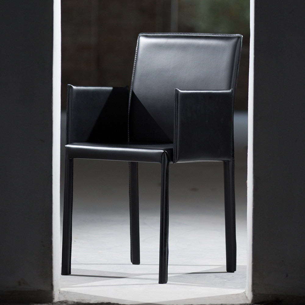 Chaise de salle à manger avec accoudoirs en cuir Made in Italy