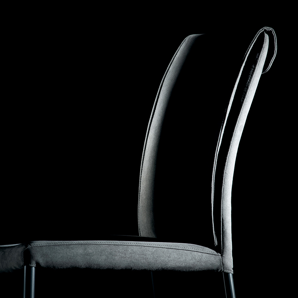 Chaise de salon réalisée avec assise et dossier en acier entièrement recouverts de tissu et pieds en acier laqué. Il s'adapte facilement à tous les styles et contribue à créer une atmosphère unique et élégante . La conception légère ajoute non seulement du caractère aux espaces domestiques, tels que les salles à manger et les cuisines, mais est également idéale pour les espaces contract , tels que les bars et les restaurants, grâce à sa forme simple et sophistiquée.