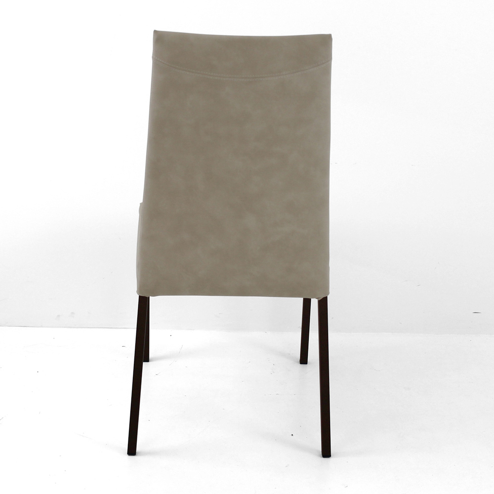 Chaise de salle à manger entièrement fabriquée en Italie en similicuir rebelle de couleur ivoire avec pieds laqués mats de couleur rouille. La chaise au design moderne et captivant se caractérise par une couture en demi-lune sur le dossier et un dossier incurvé qui la rend très confortable et lui donne une touche d'originalité unique. Grâce à ses finitions simples et douces, c'est une idée parfaite pour tous ceux qui aiment meubler leurs salons, salles à manger et cuisines avec goût et style sans sacrifier la fonctionnalité et le confort.