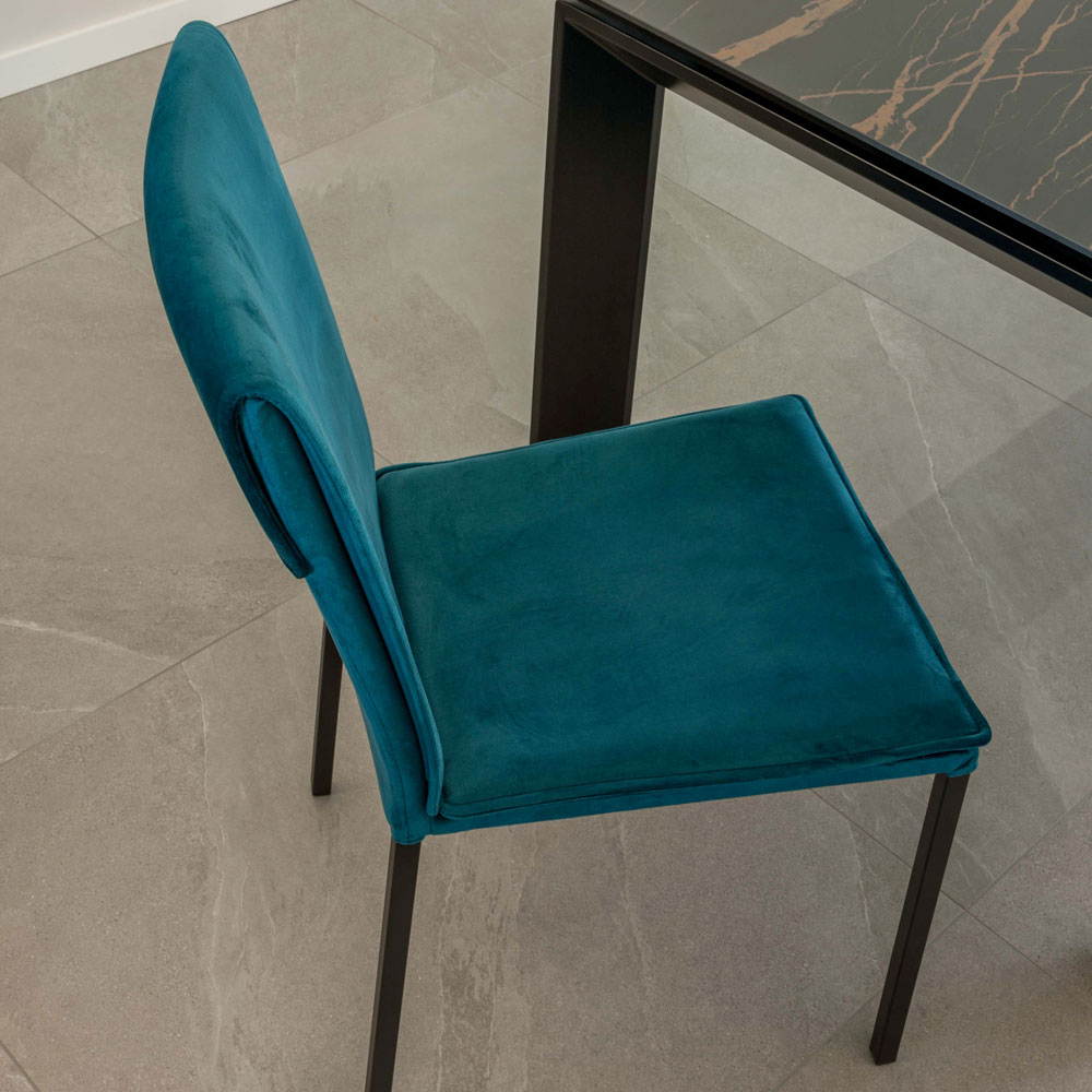 Chaise d'intérieur réalisée avec assise en velours antitache et structure en métal peint en noir. Ce produit est conçu pour tous ceux qui souhaitent allier fonctionnalité et modernité. En fait, cette chaise est parfaite pour être intégrée dans les espaces de vie, les cuisines et les salles à manger contemporains et tendance où l'on vit les moments familiaux quotidiens et où l'aspect pratique est essentiel. Grâce aux matériaux utilisés pour la production, nous souhaitons garantir au client un produit non seulement beau à regarder mais aussi de qualité et résistant dans le temps.