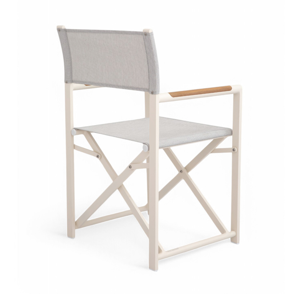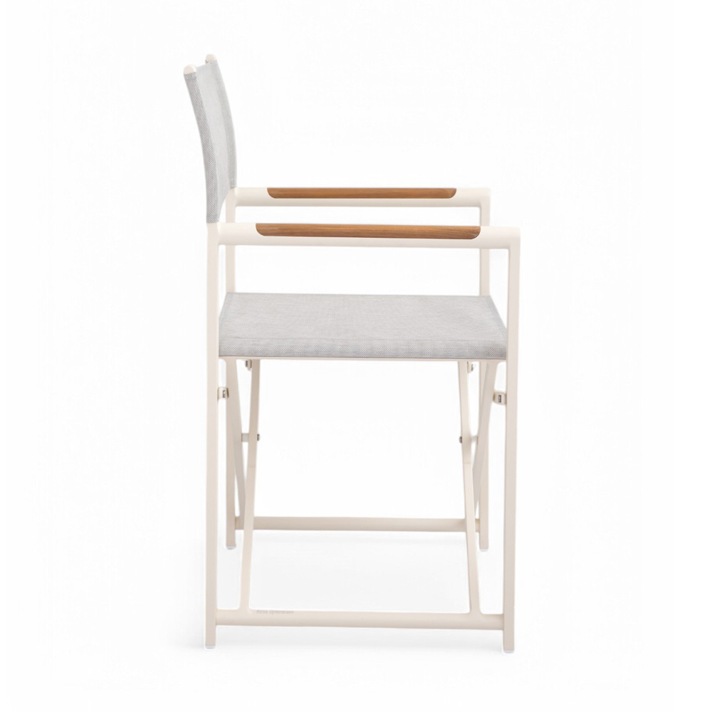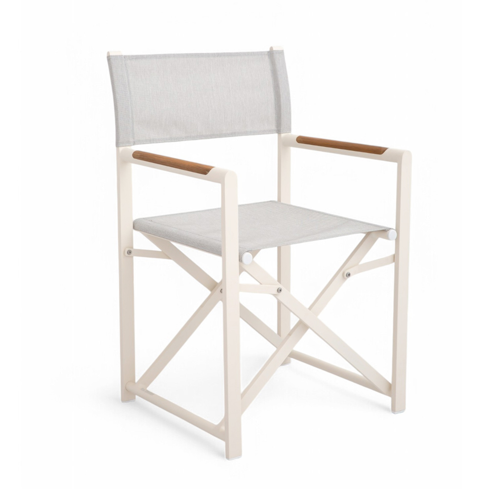 L'assise et le dossier en textilène assurent un confort maximal même pendant les journées les plus chaudes, tandis que les détails en bois naturel sur les accoudoirs ajoutent une touche de raffinement. La conception pliante rend cette chaise extrêmement pratique et polyvalente , parfaite pour les dîners dans le jardin ou les moments de détente sur la terrasse.