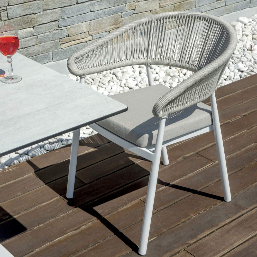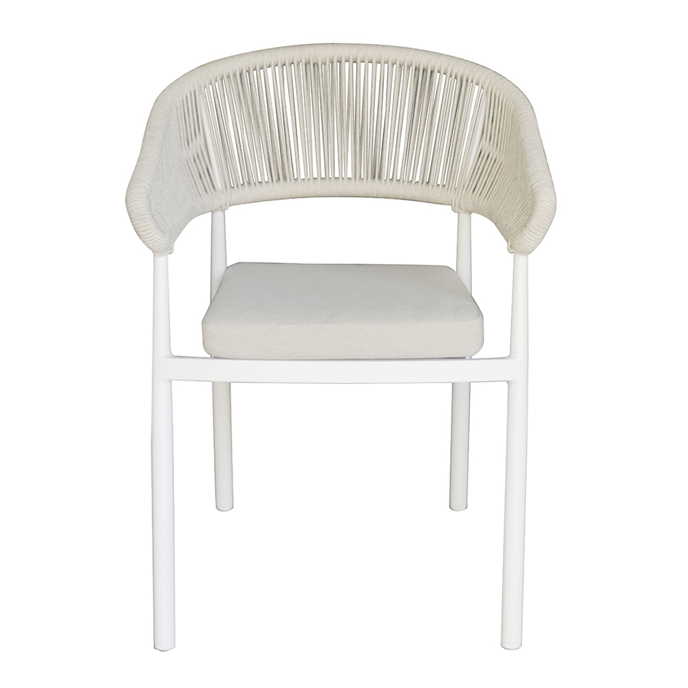 Donnez une touche de style sophistiqué et de praticité à vos environnements extérieurs avec cette chaise au design moderne. Le dossier en corde ajoute un élément d'élégance artisanale, tandis que le siège en lattes d'aluminium assure la solidité et le confort, ce qui en fait une chaise idéale pour un usage quotidien.
