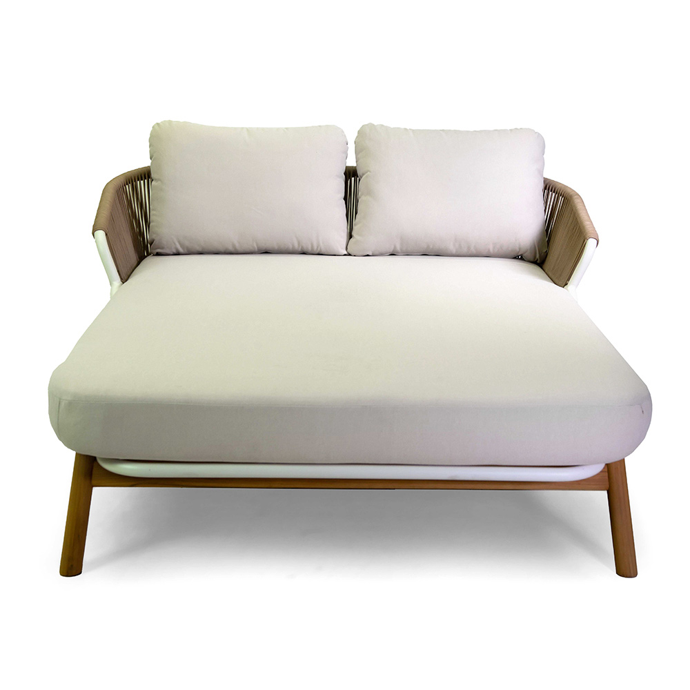 Cette chaise longue allie élégance et confort, ce qui en fait l'ajout parfait à tout espace intérieur ou extérieur. Sa construction en bois de teck de haute qualité garantit sa durabilité et sa résistance aux intempéries, tandis que son design élégant et ses lignes épurées s'intègrent parfaitement à tous les intérieurs. Le revêtement en fabrication souple et durable offre un confort maximal, ce qui en fait l'endroit idéal pour se détendre. Les coussins ajoutent au confort, faisant de cette chaise longue une Oasis de détente parfaite pour profiter de moments de pure tranquillité à l'extérieur ou dans un salon lumineux.
