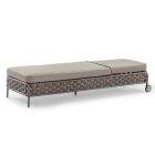 Chaise longue de jardin avec structure interne en aluminium peint anthracite enveloppée d'un élégant tissage en corde de polyester finition marron et coussins amovibles en caoutchouc hydrofuge recouvert de tissu acrylique de couleur marron .