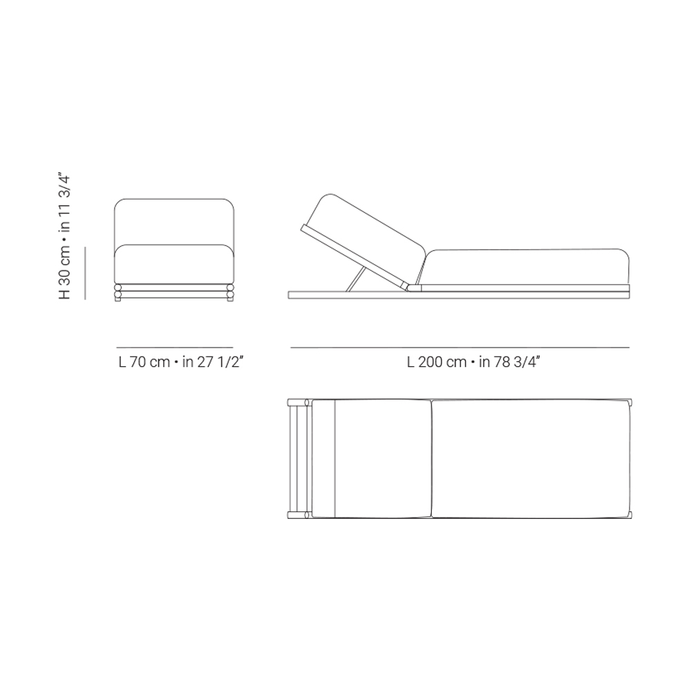 L 208 x P 82 x H 88 cm