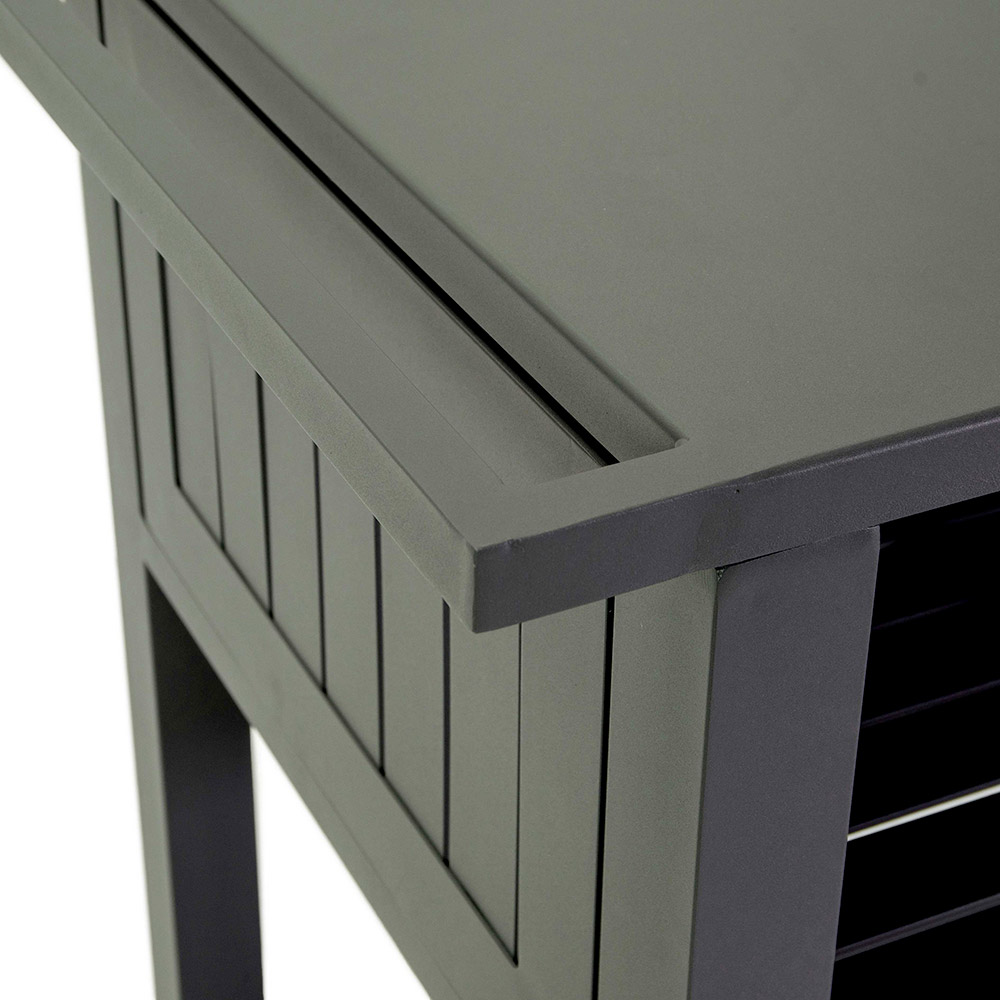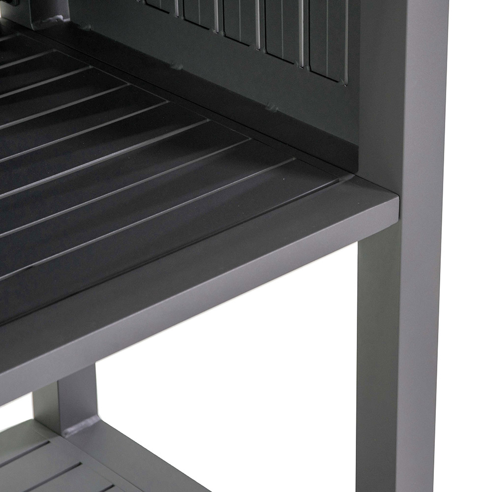 Offrant des surfaces de travail et de stockage , le design comprend une étagère supérieure pratique pour la préparation et le service, une étagère centrale pour garder les ustensiles et les accessoires à portée de main, et une grande étagère inférieure parfaite pour stocker des fournitures supplémentaires ou de grands outils de jardinage.