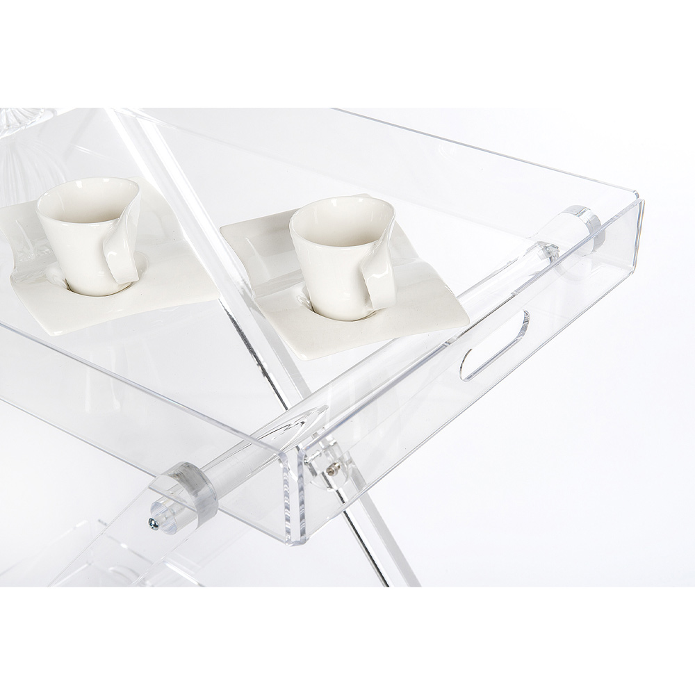 Le chariot alimentaire pratique et polyvalent , fabriqué en plexiglas 100% PMMA à partir de polymère vierge, a un design moderne et linéaire , composé de 2 étagères qui le rendent très utile comme chariot auxiliaire dans l'environnement domestique. Un complément dans lequel l'esthétique rencontre la fonctionnalité.