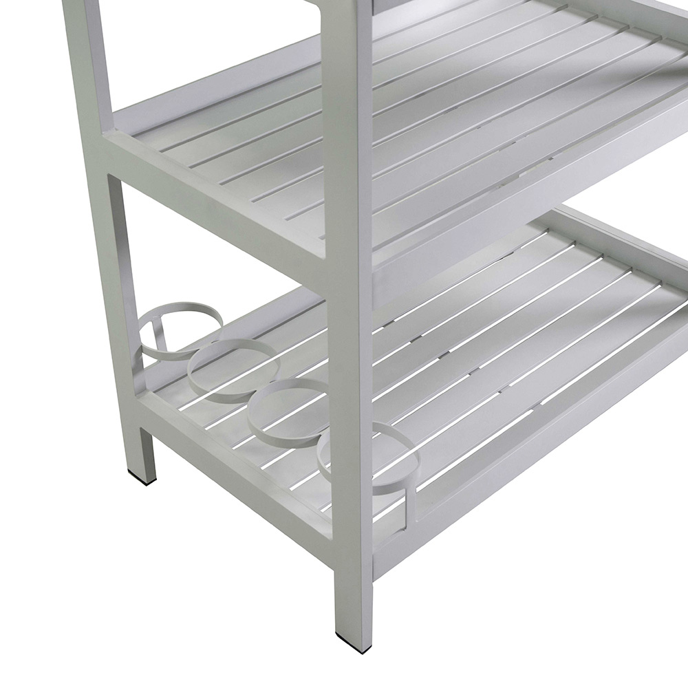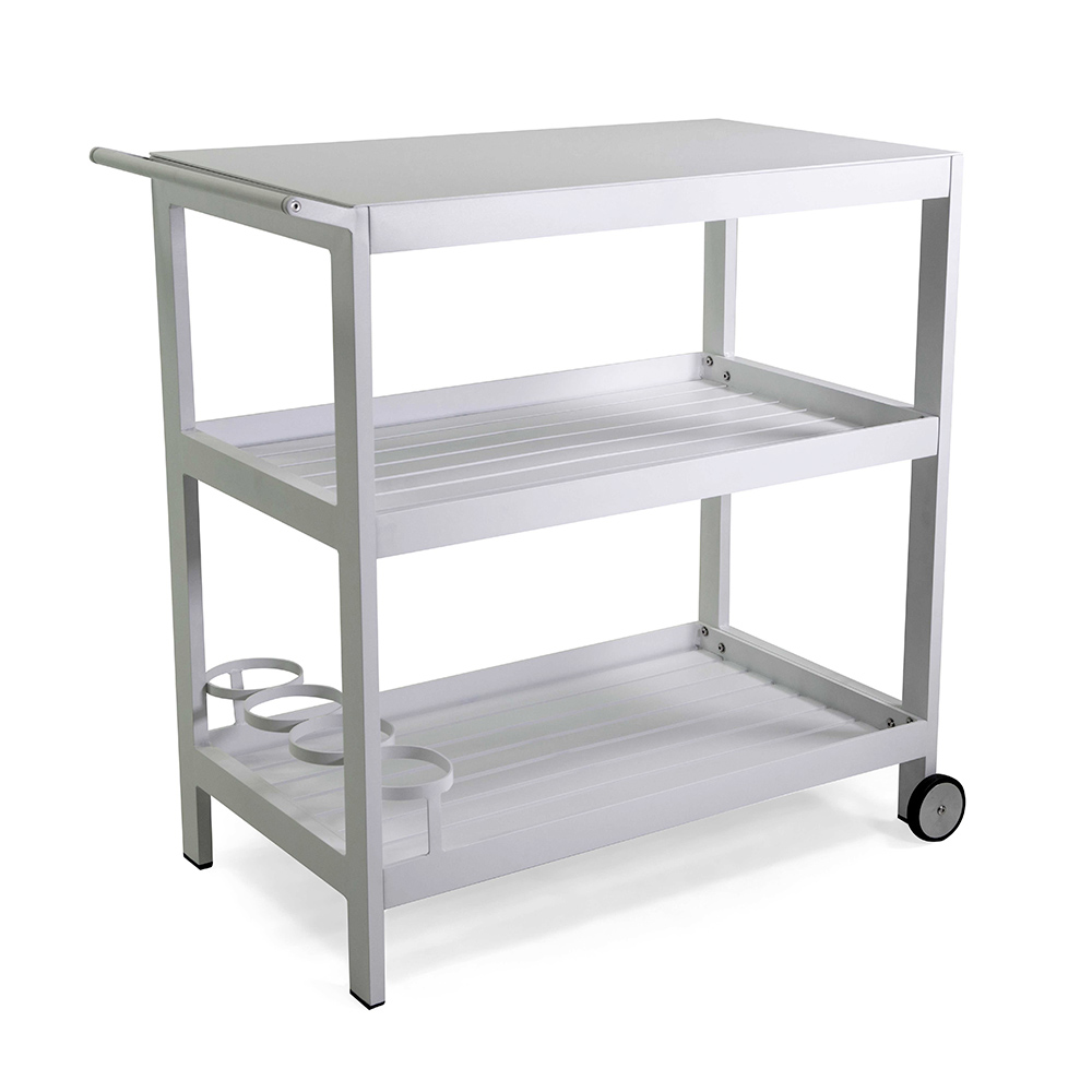 Le bâti en aluminium assure la légèreté et la résistance à la corrosion, garantissant que le chariot conservera sa beauté au fil du temps, même en cas d'utilisation extérieure fréquente. Qu'il s'agisse d'un après-midi de détente sur le patio ou d'une soirée de divertissement, ce chariot ajoutera une touche d'élégance fonctionnelle à toute occasion.